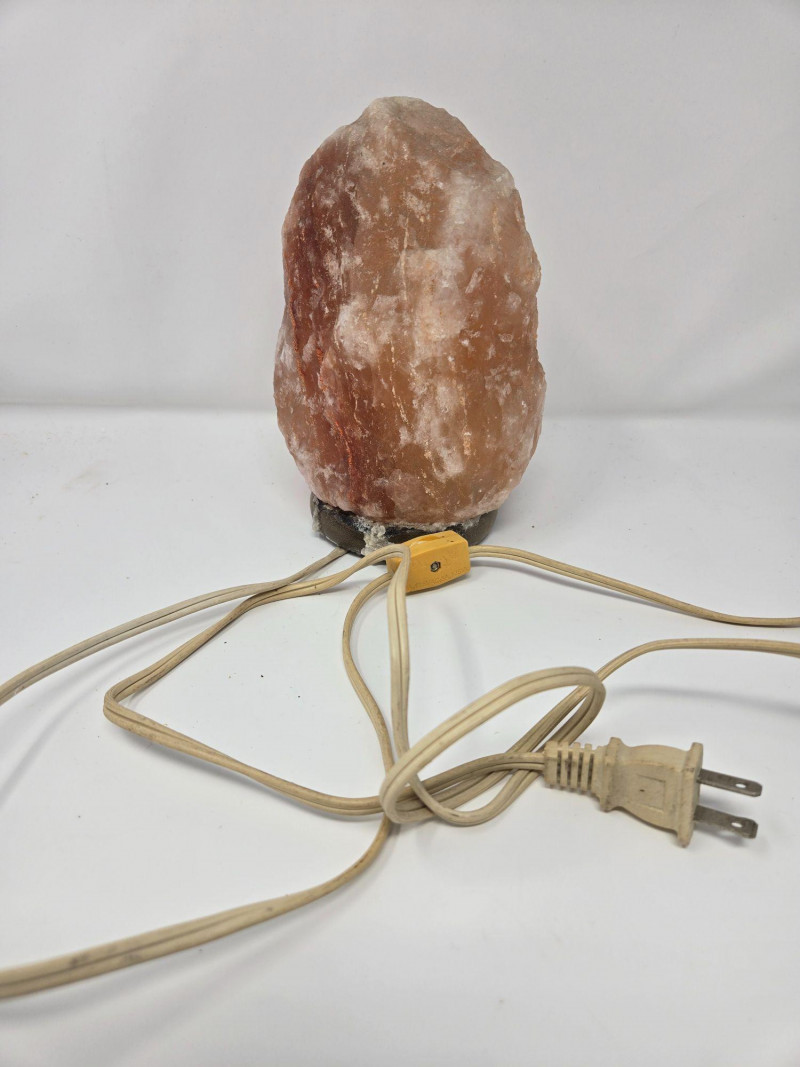 A natural carved salt crystal with warm pink‑orange tones. Includes cord. Ideal for ambient lighting or mineral décor. Selenite Tower Lamp