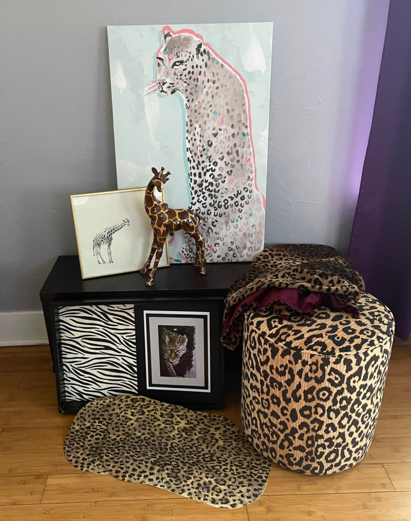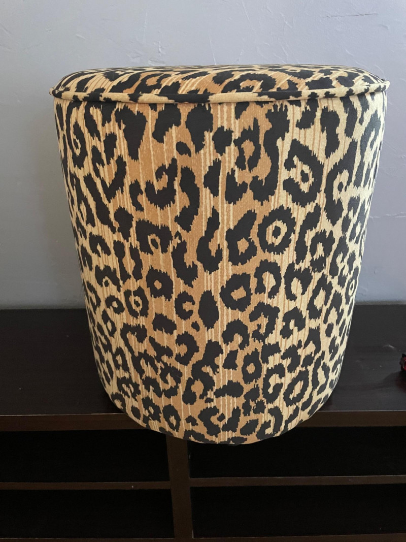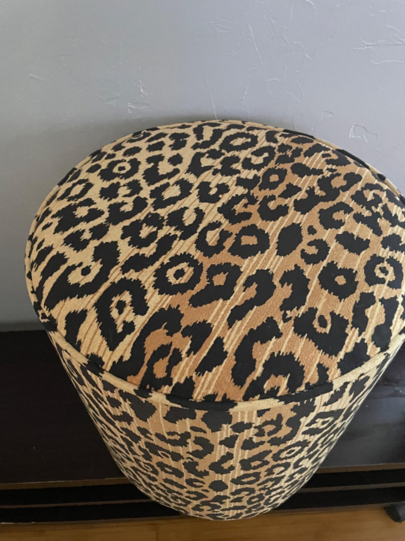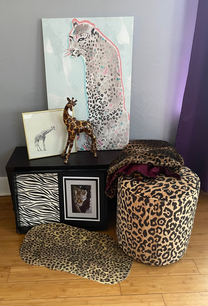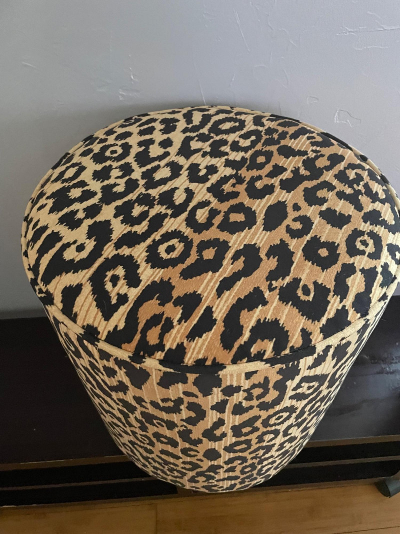 Leopard‑Print Ottoman with matching leopard‑print throw