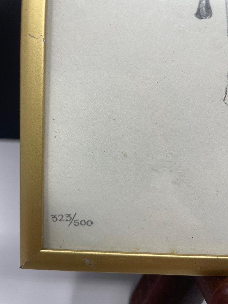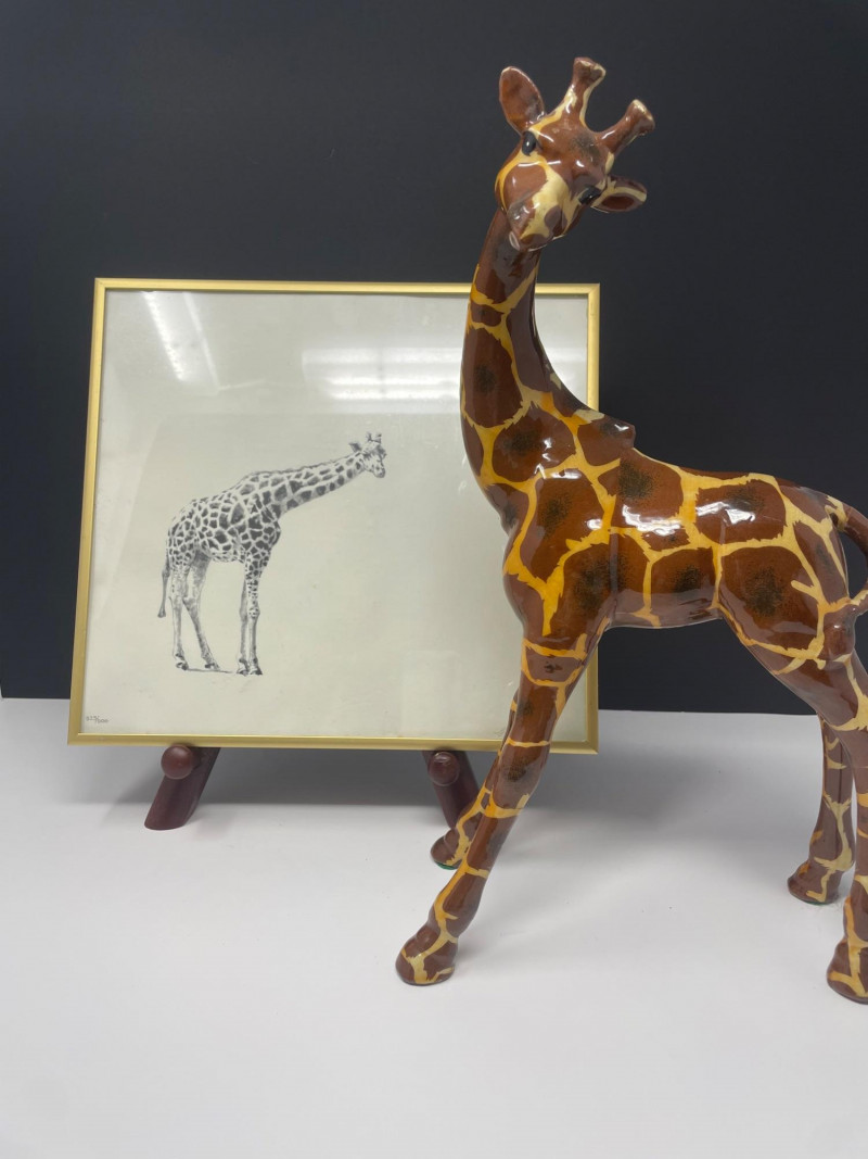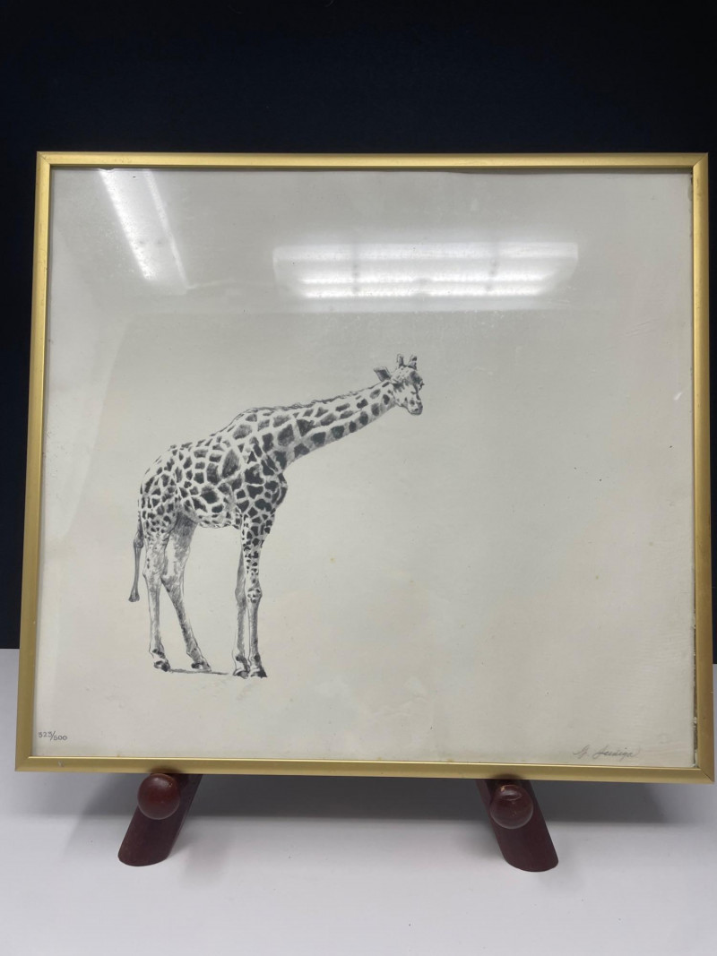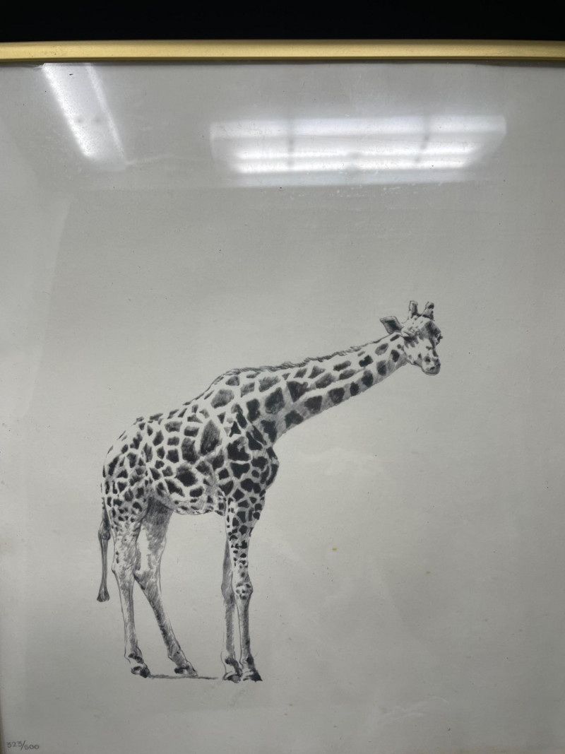 Framed Giraffe Drawing — soft, illustrative style (323/500)