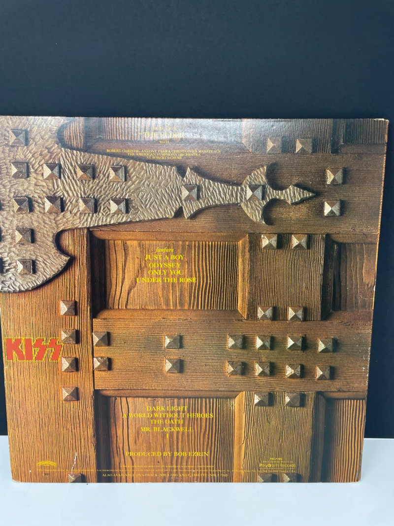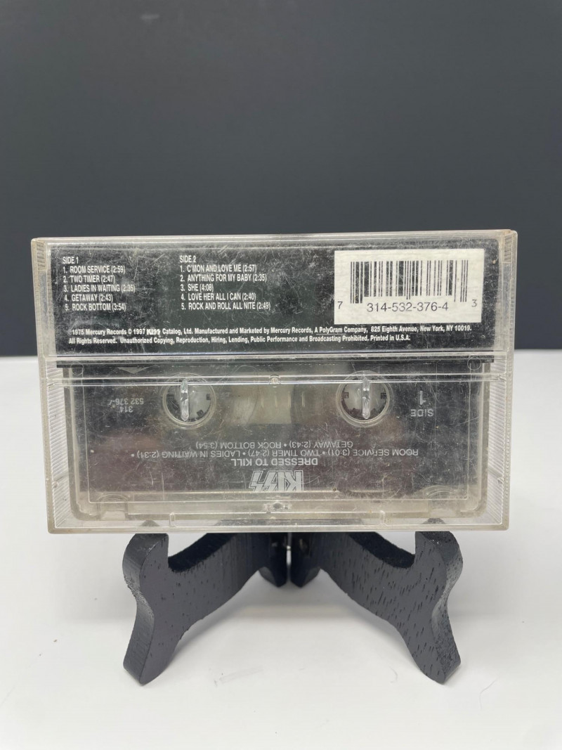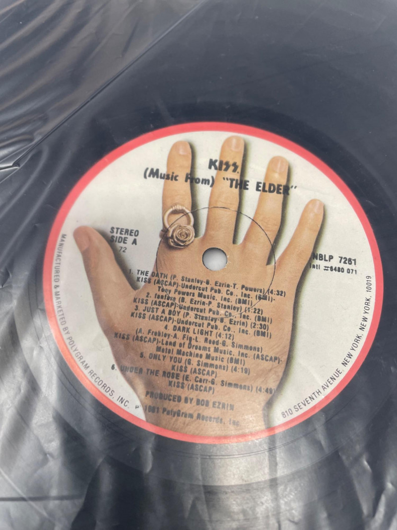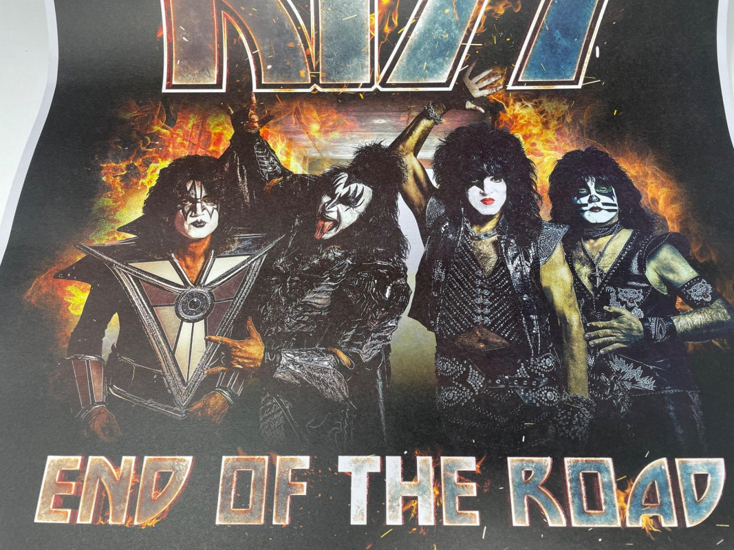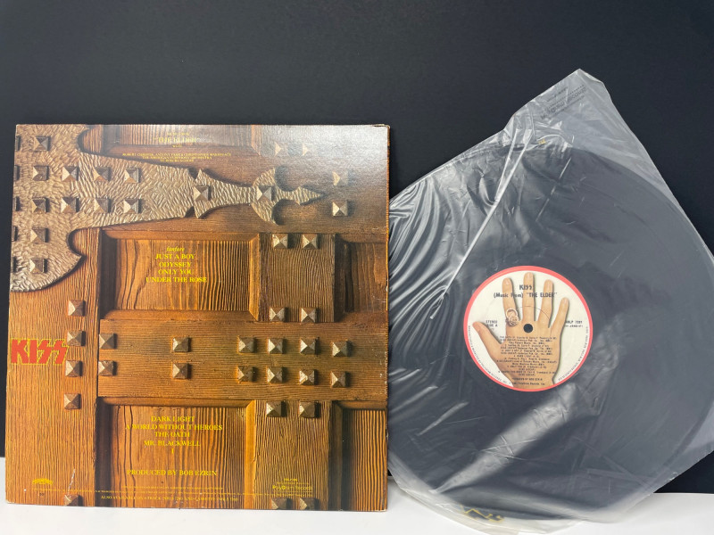 A bold, fan‑favorite assortment of KISS memorabilia, spanning music, merch, and collectible display pieces. This lot celebrates multiple eras of the band’s iconic style and stage presence. Included Highlights: “Music from The Elder” Vinyl Album — classic cover art with the hand‑to‑door‑knocker design Boxed Set of Four KISS Action Figures — Peter Criss, Paul Stanley, Gene Simmons, Ace Frehley KISS Cassette Tape displayed on stand Kiss End of Road Poster 24" x 18" World Tour Backstage Pass Card — “IN CONCERT” design Two KISS Apparel Pieces: Plastic Bag from concert “THE FINAL TOUR EVER” shirt with large silver KISS logo A striking, ready‑to‑display collection for KISS fans, rock‑and‑roll collectors, or anyone building a music‑memorabilia showcase.KISS Music Memorabilia and Poster