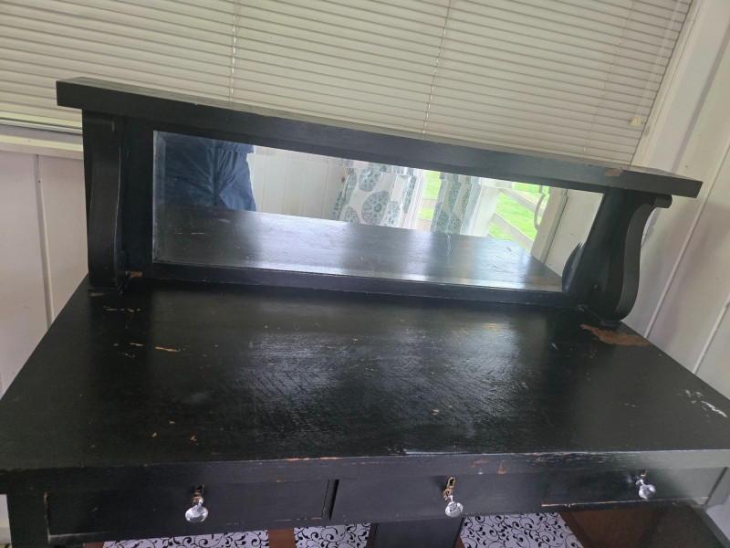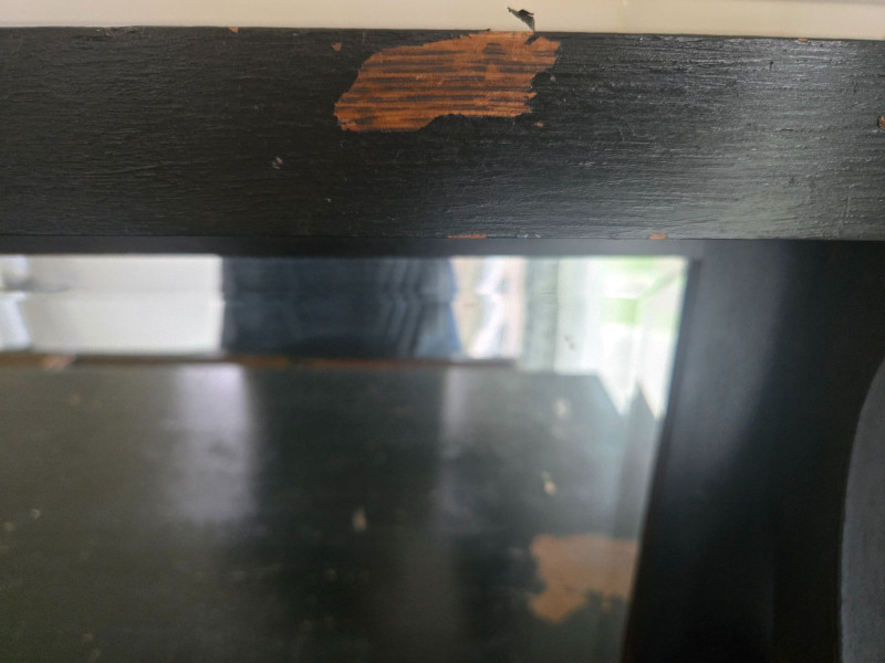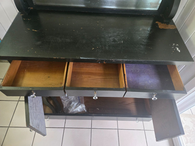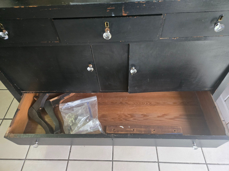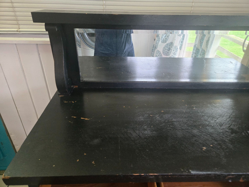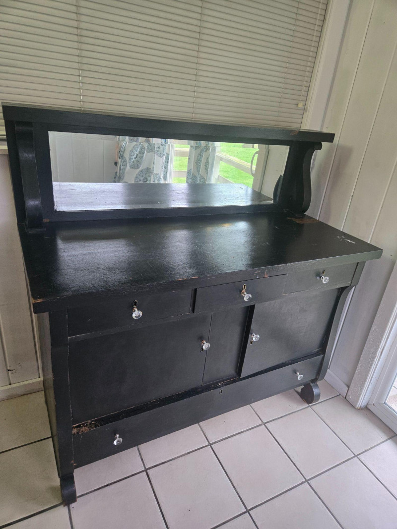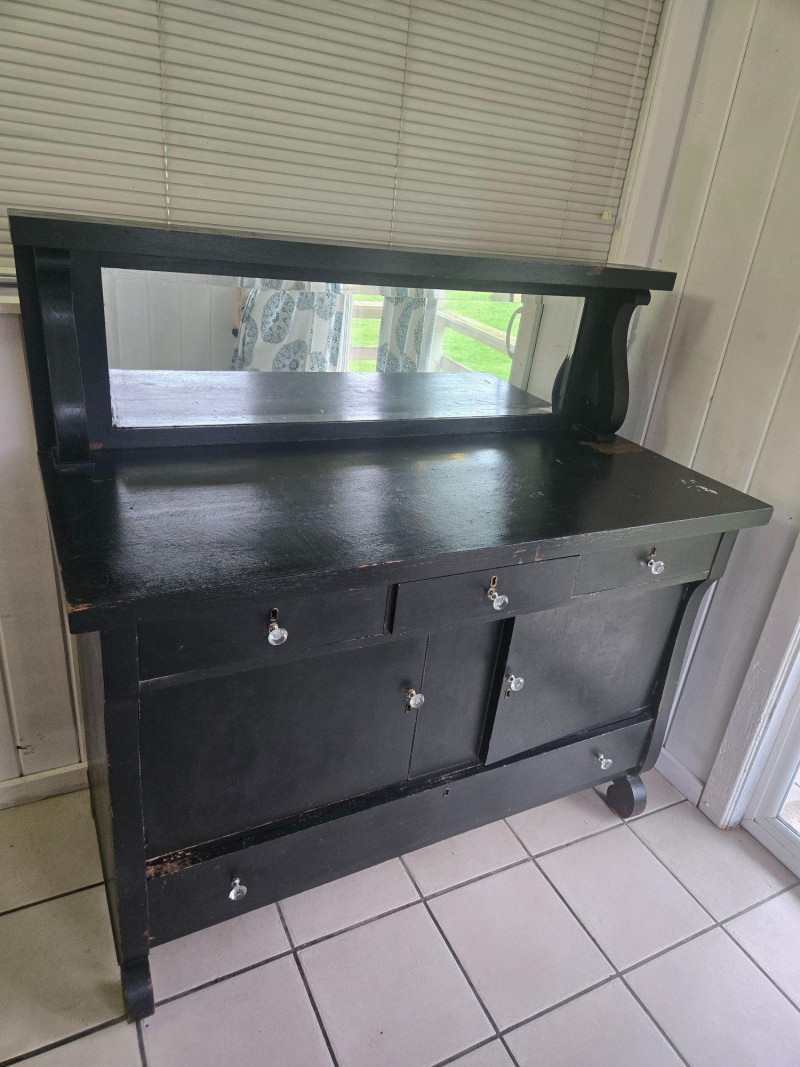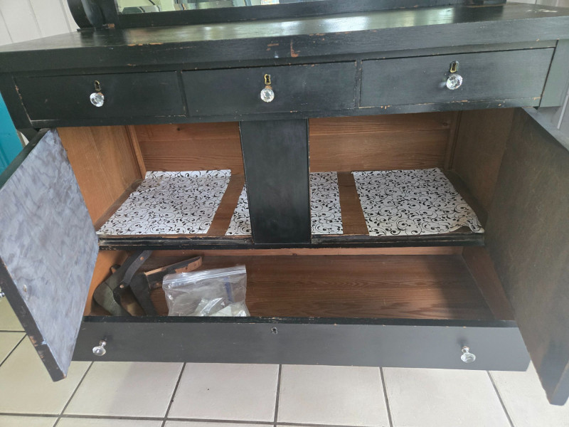 A striking tiger‑wood sideboard/hutch that has been professionally painted black, giving it a bold, modernized presence while still letting the underlying craftsmanship show through. The piece offers a versatile combination of storage and display, making it equally at home in dining rooms, living spaces, or entryways. Features: Solid tiger‑wood construction (now painted black) Upper hutch shelving for display or open storage Lower cabinet/sideboard section for concealed storage Clean, updated finish that suits both traditional and contemporary interiorTiger Wood (Painted Black) Sideboard / Hutch