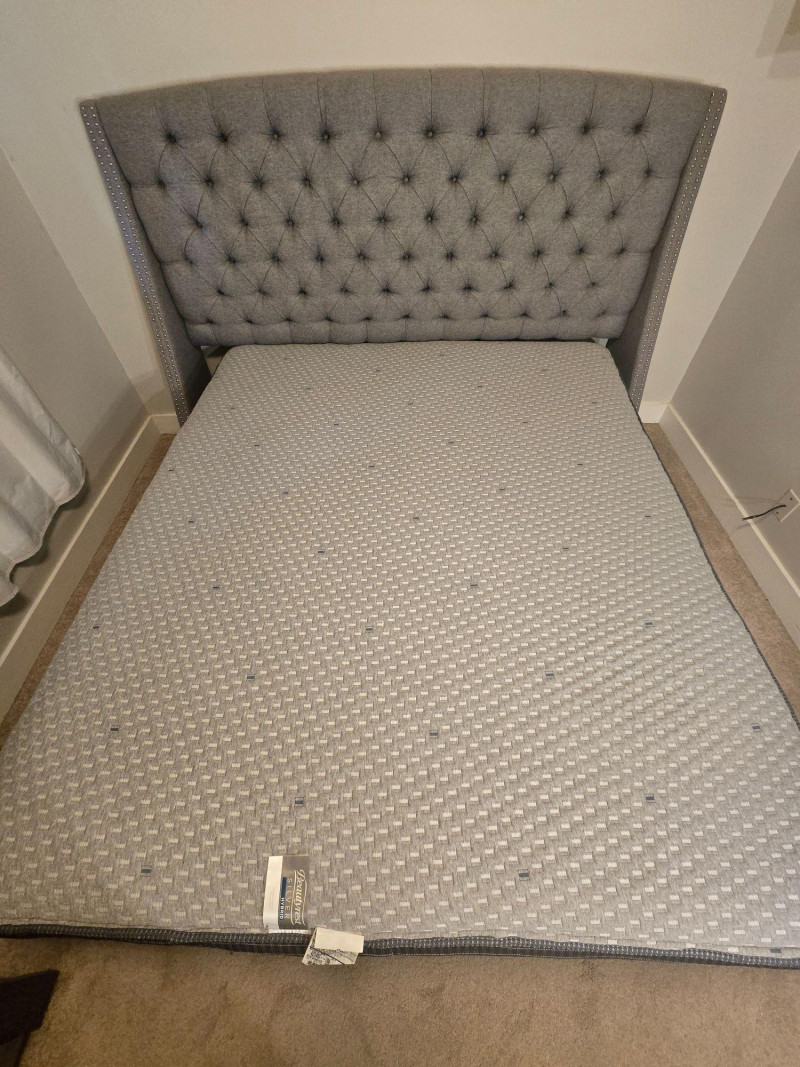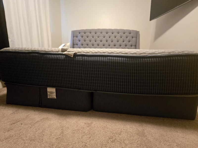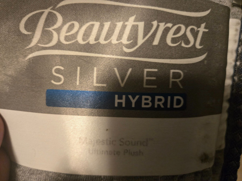 A Beautyrest Silver Hybrid mattress, measuring approximately 35.5" x 83", offering the signature blend of supportive innerspring construction and contouring hybrid comfort. Ideal for guest rooms, daybeds, or upgrading a compact sleeping space. Hybrid construction for balanced support Beautyrest Silver line known for cooling and pressure‑relief features Compact, long‑twin–style dimensions (approx. 35.5" x 83") Normal wear consistent with pre‑owned bedding. All items sold AS IS, WHERE IS.Cal-King Beautyrest Silver Hybrid 35.5" x 83"