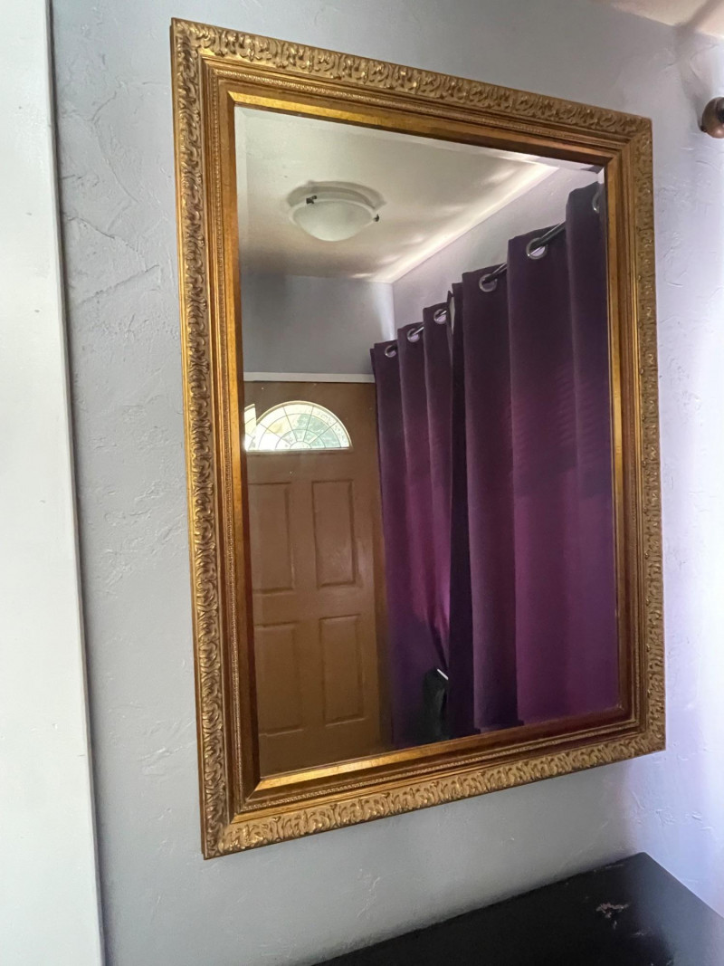 A warm and inviting trio of entryway or living‑room décor pieces, combining functional storage with charming character. Included: Pre‑owned condition with typical wear from home use. All items sold AS IS, WHERE IS. Mirror: 29. 1/2” x 41 1/2” H Bookcase: 15” x 31” x 36” H (some wear) Borse Planter: 8 1/2” Round x 7 1/2” HMirror, Bookcase and Horse Head Planter