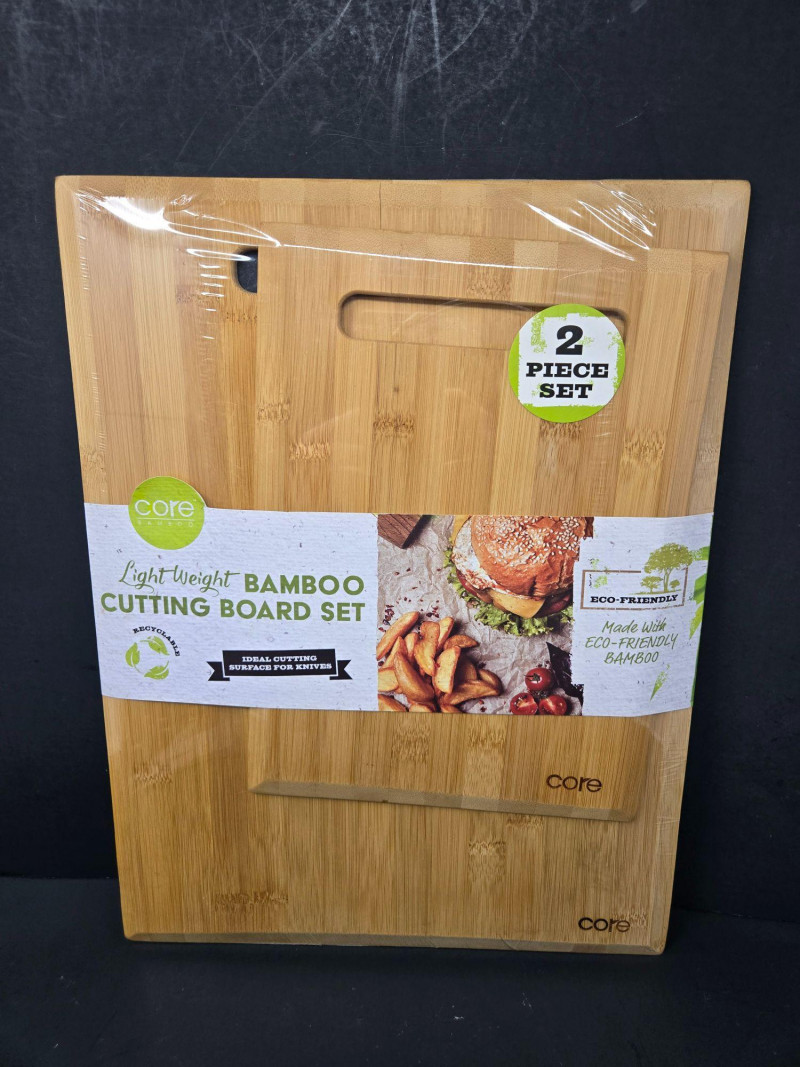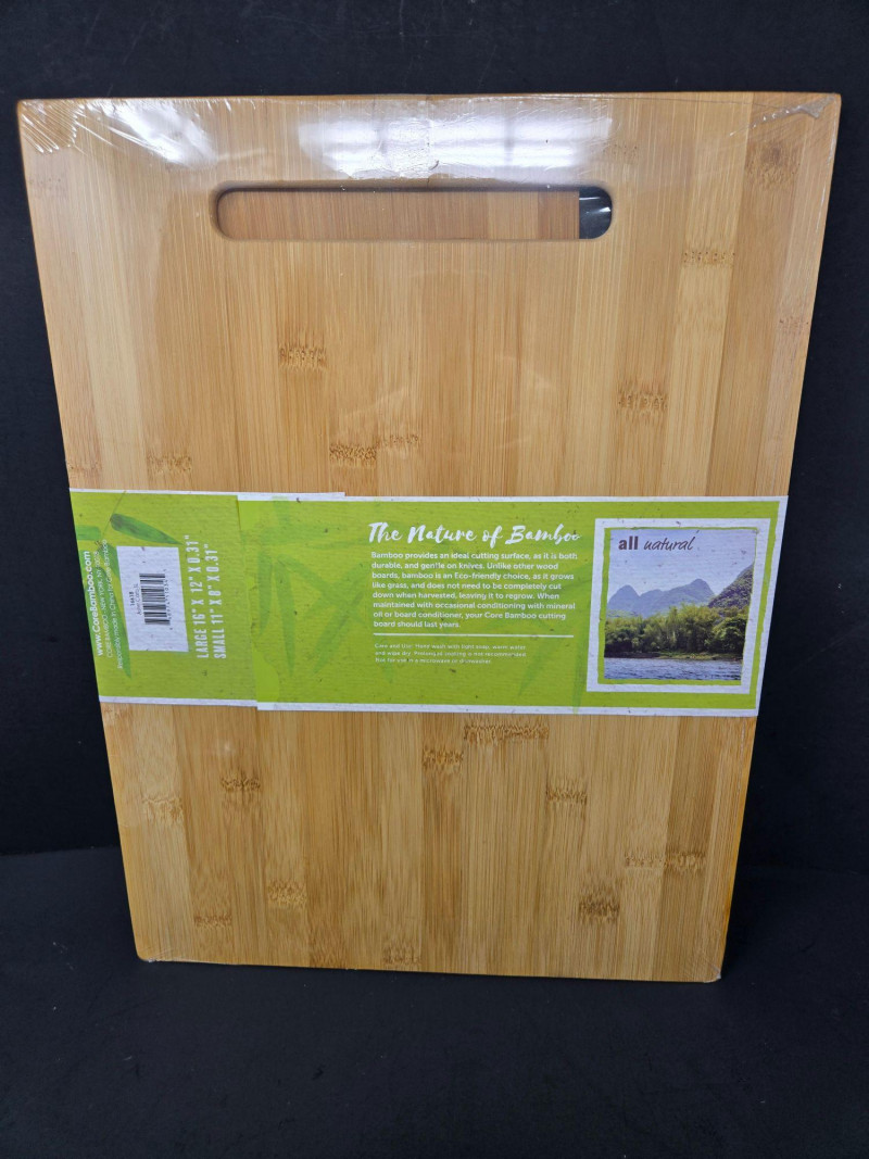 A versatile kitchen prep bundle featuring eco‑friendly bamboo cutting boards paired with a wide assortment of quality kitchen knives from well‑known brands. Ideal for home cooks, meal preppers, or anyone looking to refresh their kitchen tools. Included Highlights: Core Bamboo Cutting Board Set 2‑piece lightweight bamboo board set (Lg 16 x 12", Sm 11 x 8") Eco‑friendly, smooth cutting surface Great for chopping, serving, or everyday prep Knife Assortment Henkle knives Emeril branded knife Omaha Steaks serrated knife Oneida knife Additional mixed kitchen knives in various sizes and blade styles Black riveted handles; includes serrated and straight‑edge blades Pre‑owned with typical wear from kitchen use. All items sold AS IS, WHERE IS.Bamboo Boards & Knives, Henkle, Emeril, Omaha Steaks & Oneida