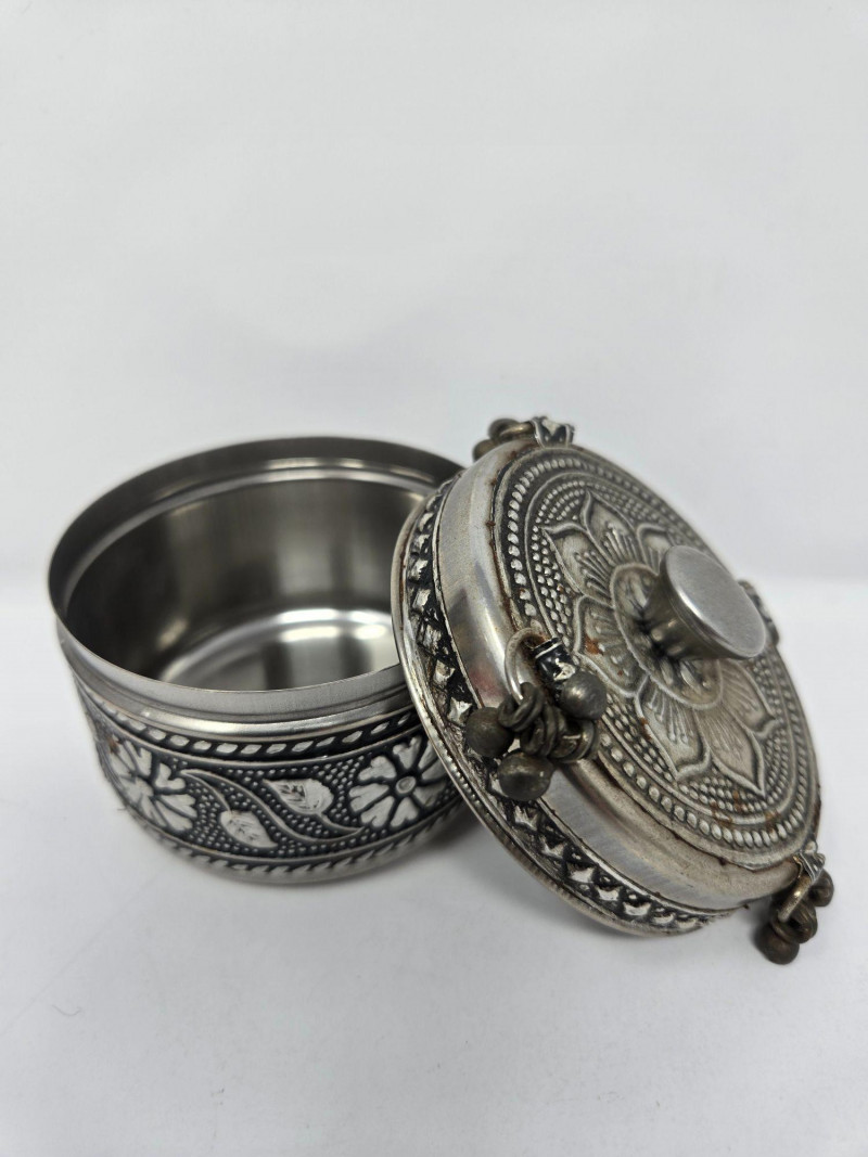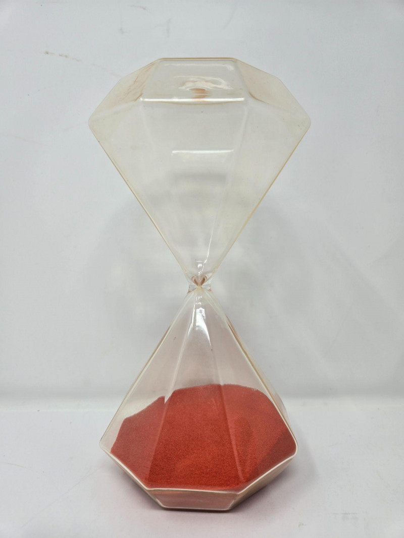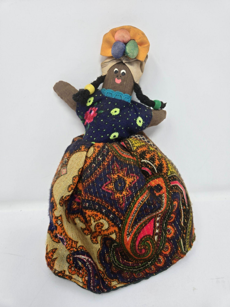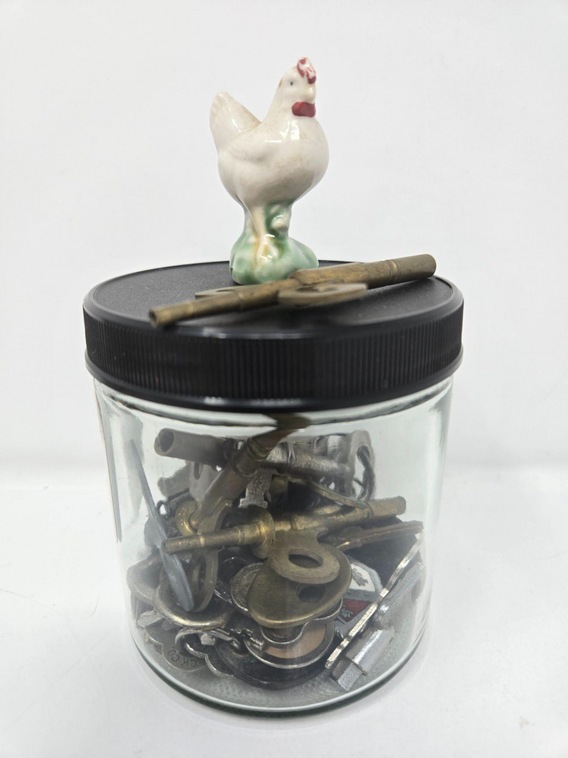 A charming and varied assortment of vintage and collectible curios, blending folk art, whimsy, and classic decorative pieces. This curated lot includes: Handmade Cloth Doll in colorful traditional dress Large Hourglass with vivid red sand Painted Wooden Chest featuring sun, moon, and star motifs Glass Jar of Vintage Keys — great for décor or craft projects Ornate Silver‑Tone Trinket Box with floral engraving Ceramic Chicken Figurine Red Heart Stone with googly eyes — playful and quirky Wooden Weather House with thermometer and figurines Mixed pre‑owned condition with age‑appropriate wear. All items sold AS IS, WHERE IS.Vintage & Collectible