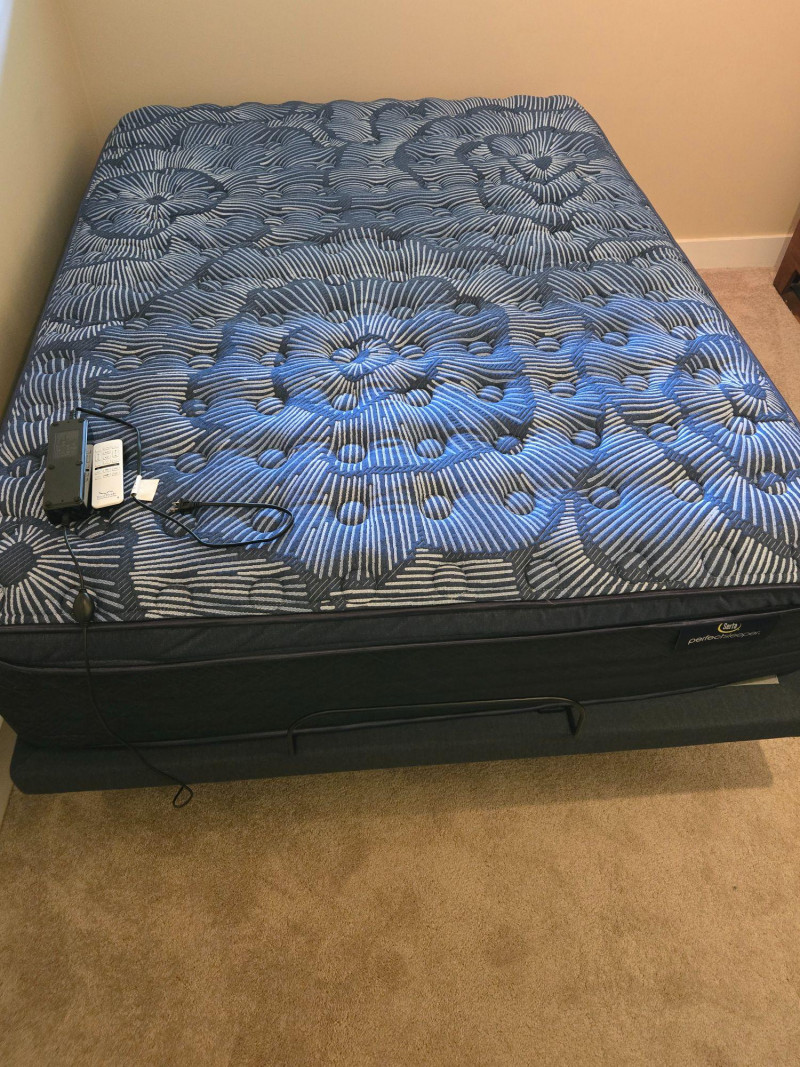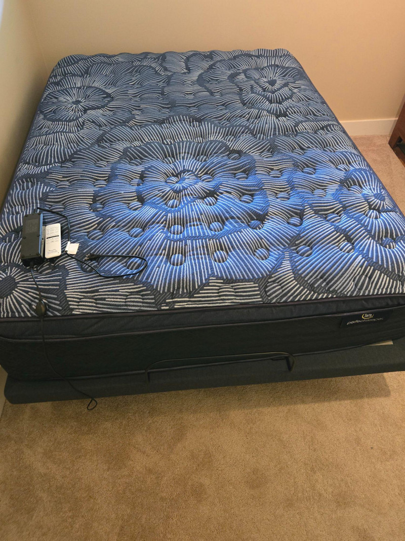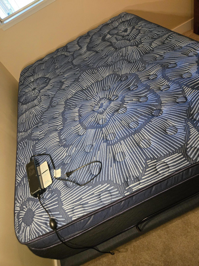 A clean, gently‑used Serta PerfectSleeper mattress and base, offering supportive comfort and a fresh, modern look. The mattress features a patterned top surface and comes paired with a sturdy matching base—an excellent upgrade for a guest room, primary bedroom, or furnished rental. Features: Serta PerfectSleeper mattress Coordinated base included Attractive patterned top surface Even, supportive feel Includes attached control unit (as shown) A well‑kept, ready‑to‑use bed set with plenty of life left. Approx. 79" L x 30" H Described as like new with minimal visible wear. All items sold AS IS, WHERE IS.Lot #89 — Like New Serta “PerfectSleeper” Bed w/Base