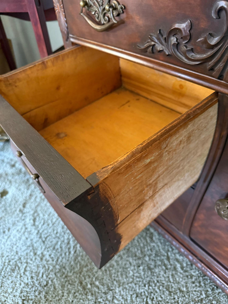 Lot # 108 - Antique Serpentine Front Chest - Art Deco Influence Carved Detail