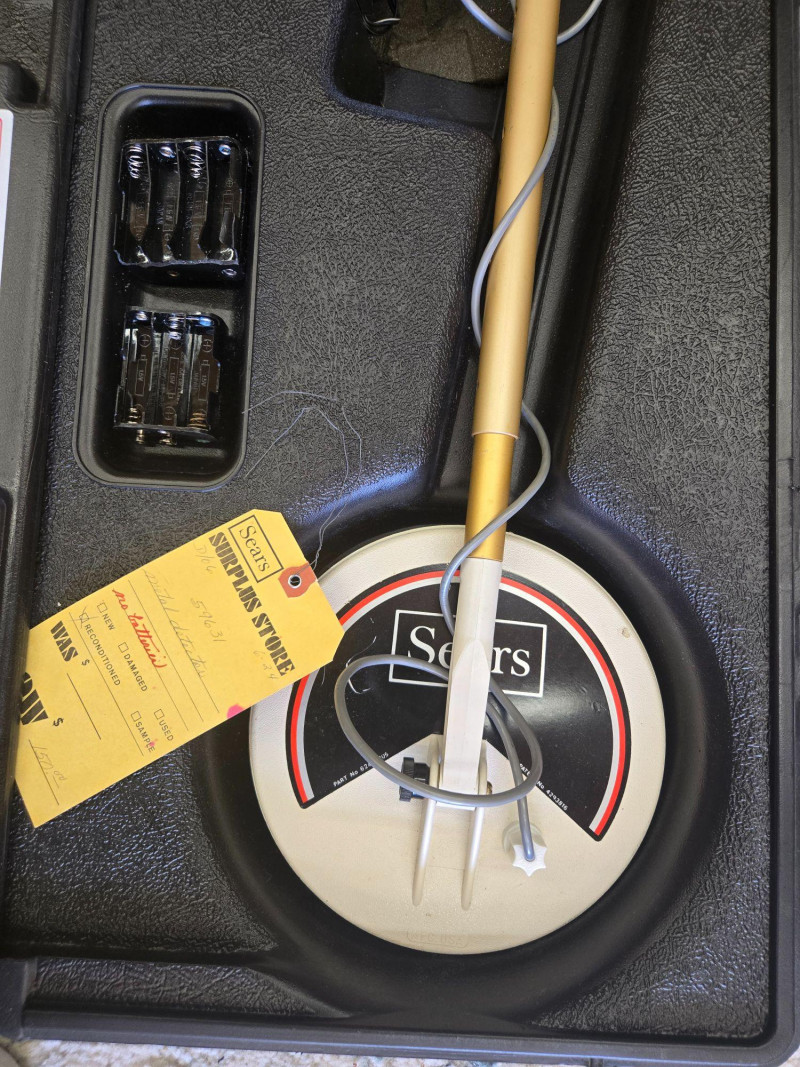 Beige shaft with original Sears‑branded search coil Hard Plastic Carrying Case