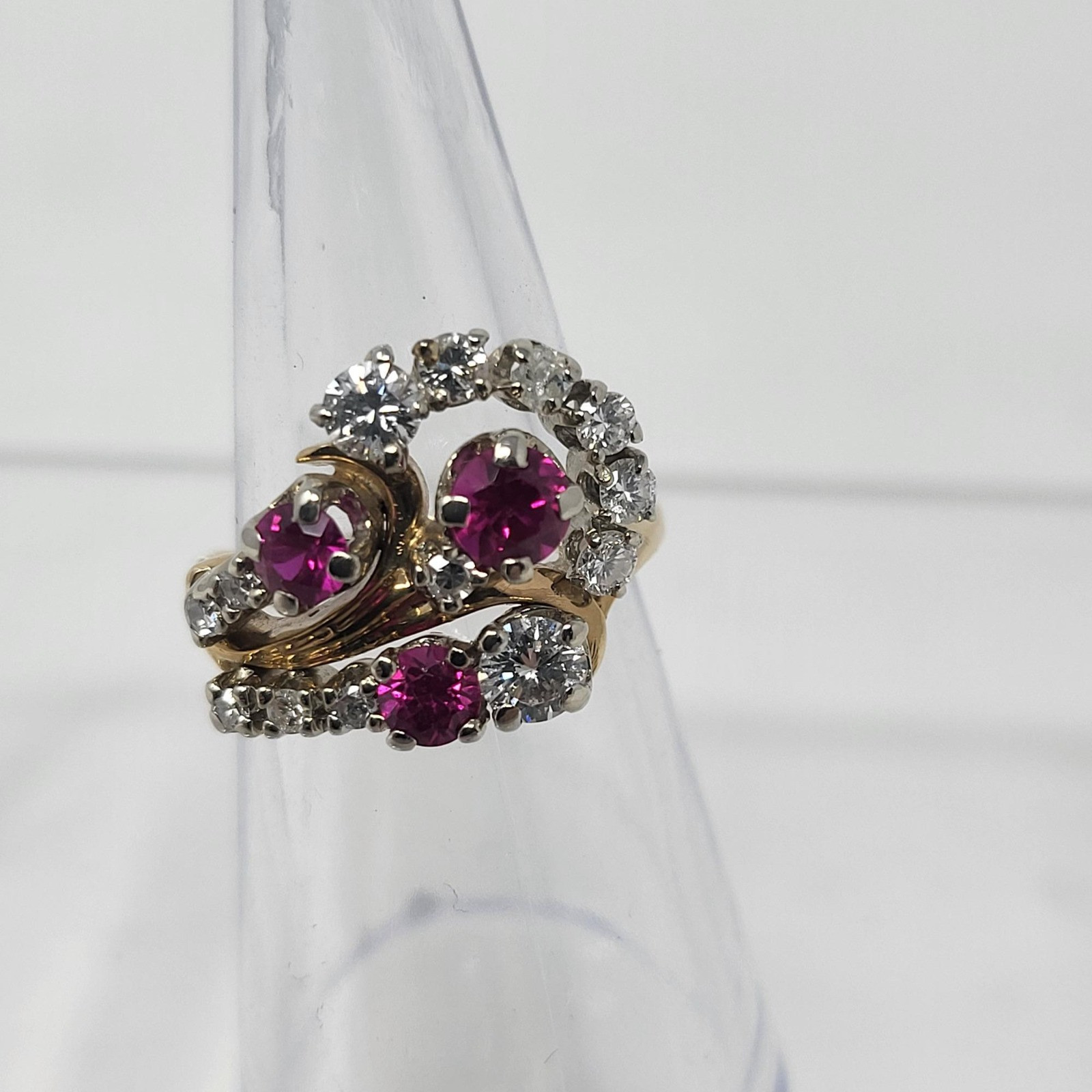 Lot # 1 - Substantial 14k Diamond & Ruby Cocktail Ring-5.5gr