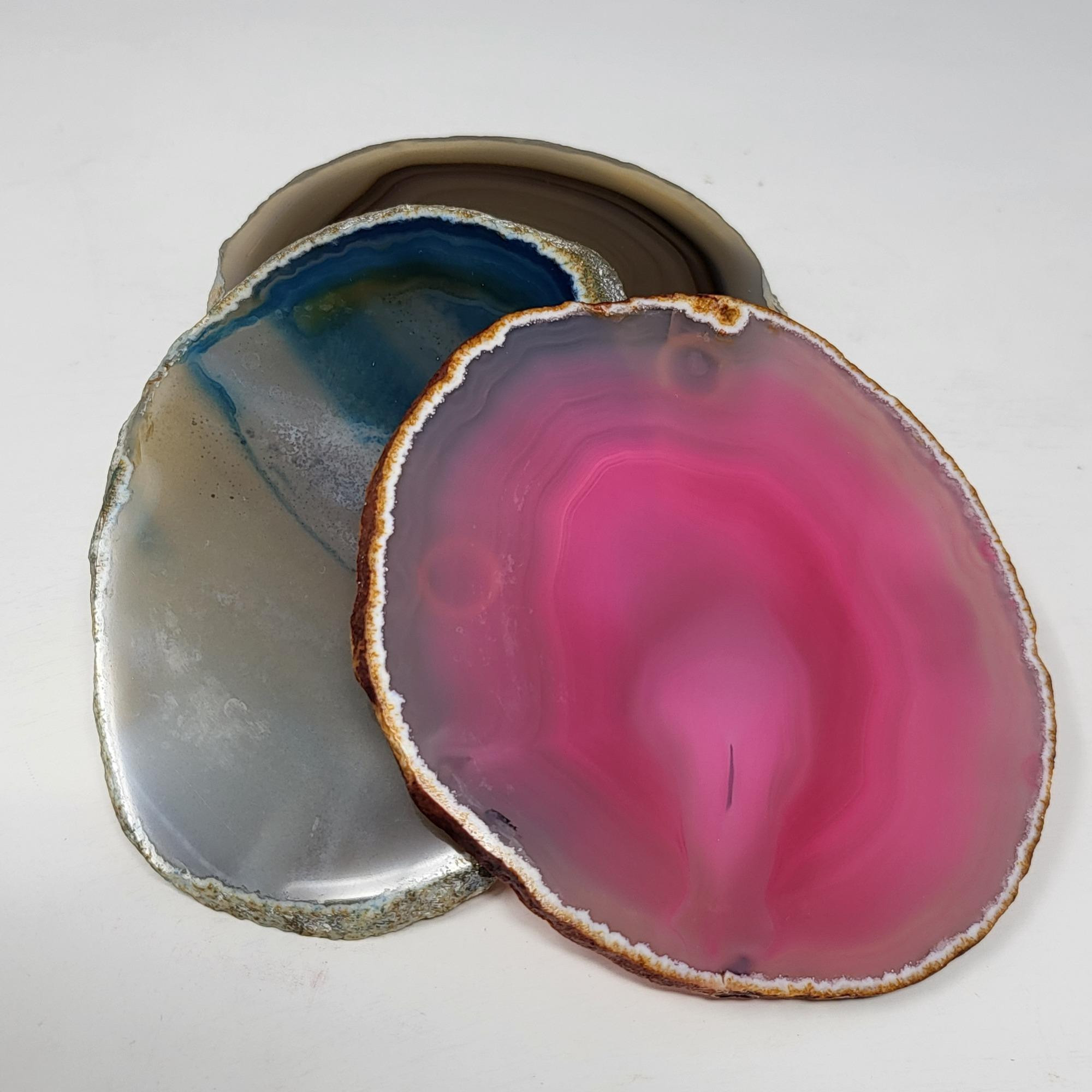 Thin slab, multi-colors agate slice coasters ranging from 3.5" to 4".