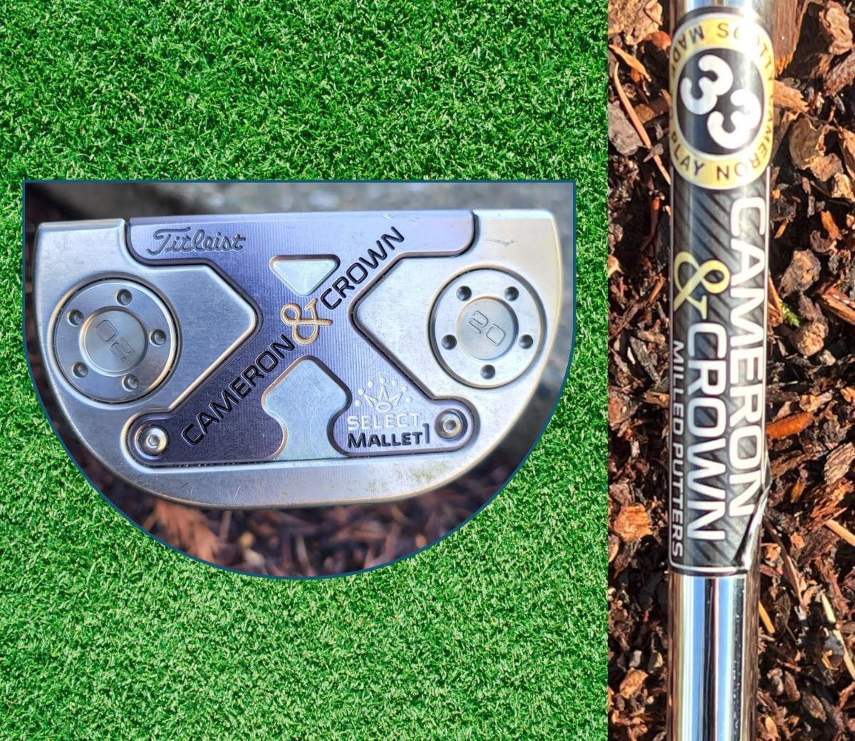 Right-handed top quality Titleist Scotty Cameron golf club. Cameron & Crown Select Mallet. Slant neck, 33" - 370 grams head weight. A head cover is included. $295