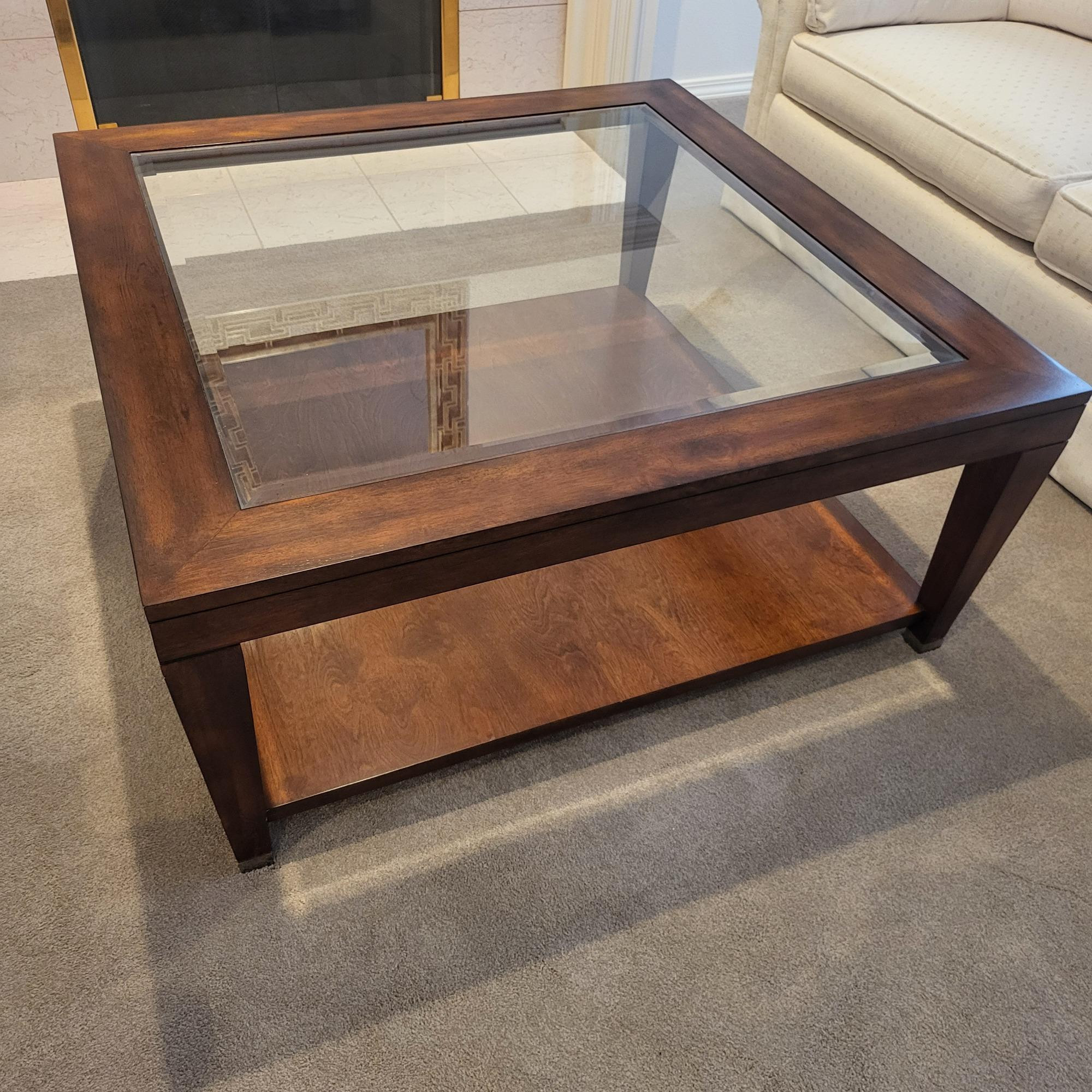 Mahogany and beveled glass. Glass is removable. 40" square. Bidding on this lot is an agreement that: (1.) You
