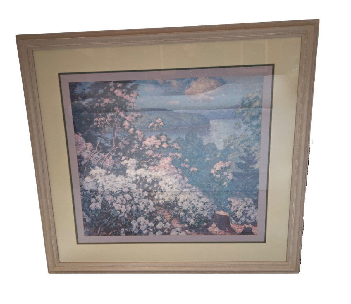 1989 "Hamburg Cove" by William Chadwick (1879-1962), Signed Offset Lithograph. Paper size is 37.25 x 40 inches, with an image size of 31.5 x 35.5 inches. The Offset Lithograph is from an unknown edition size. Ideally framed, matted and under glass so print has been well preserved. Frame size: 38.5” x 36”