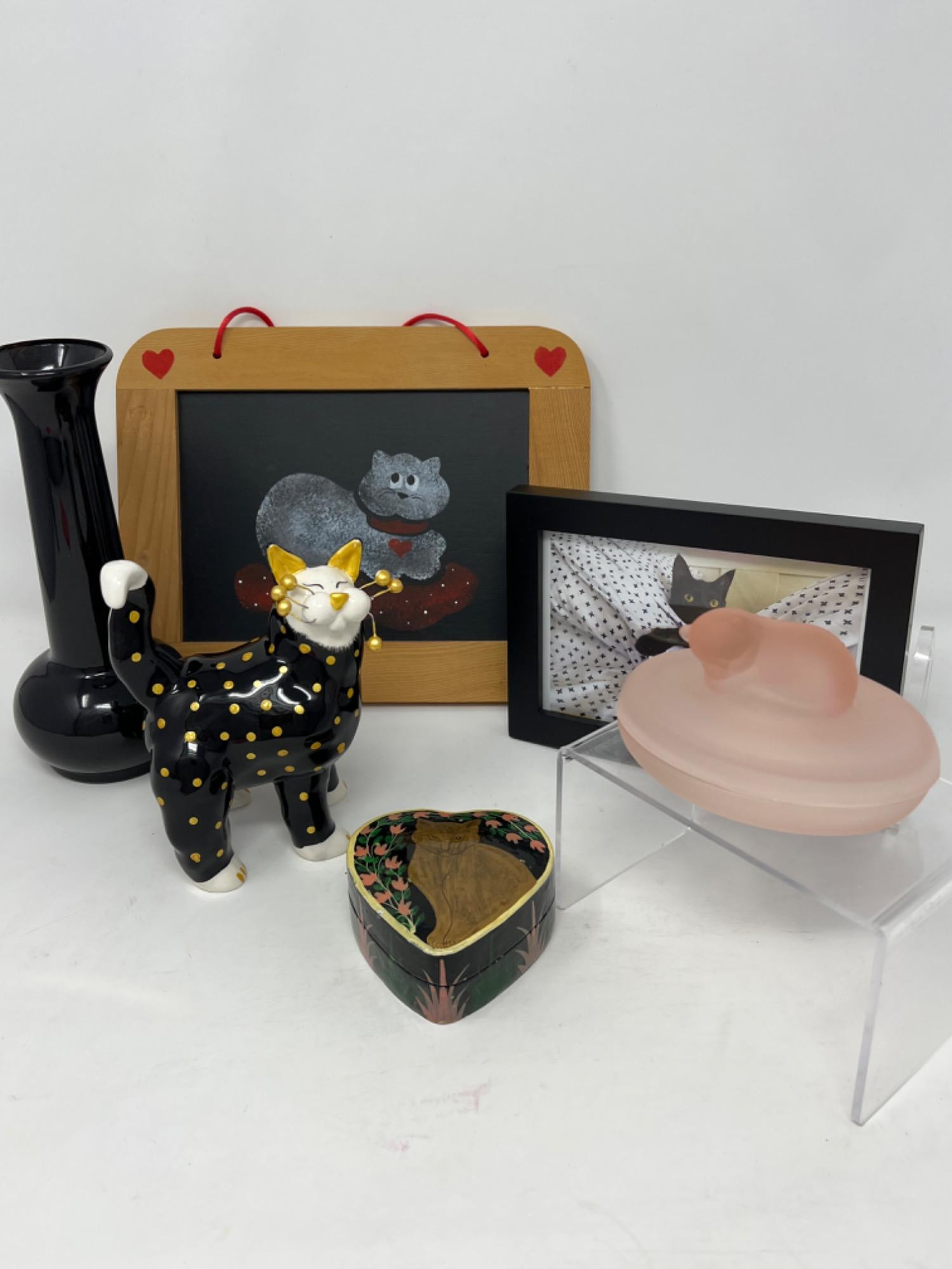 Cat pink trinket 4.5” x 3.25” wide cat with whiskers 5.25” tall x 4.25” trinket 3” x 3” pictures 9 x 8; 5 x 4