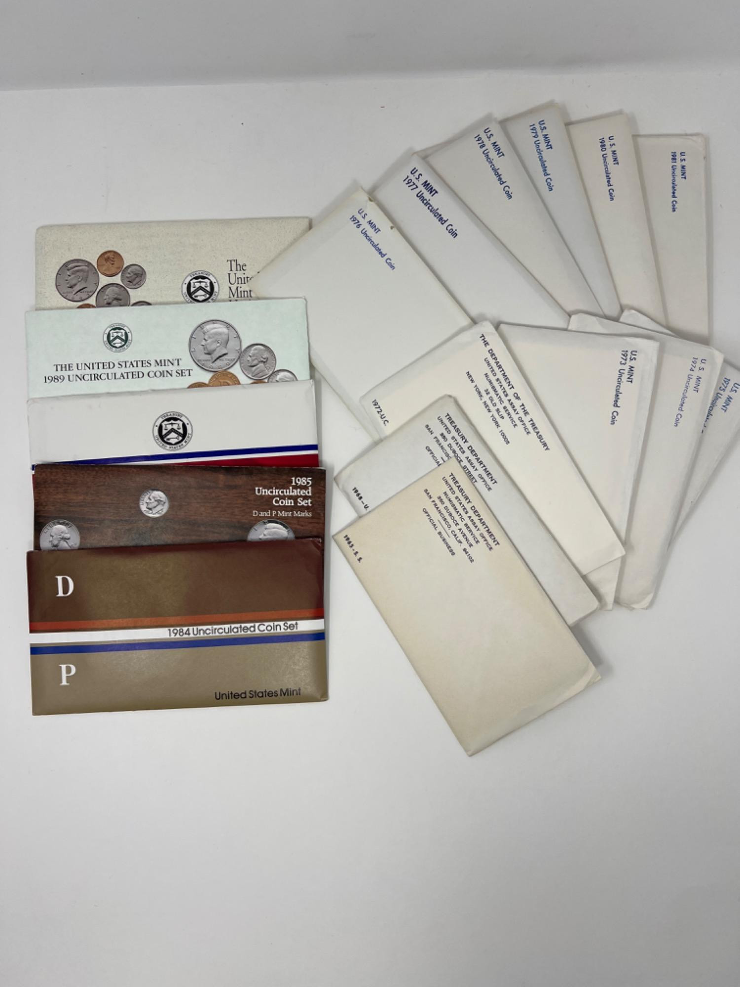Uncirculated 5 coin sets each for both Mint D and P. 1965, 1968, 1972, 1973, 1974, 1975, 1976, 1977, 1978, 1979, 1980, 1981, 1984, 1985, 1987, 1989, 1992.