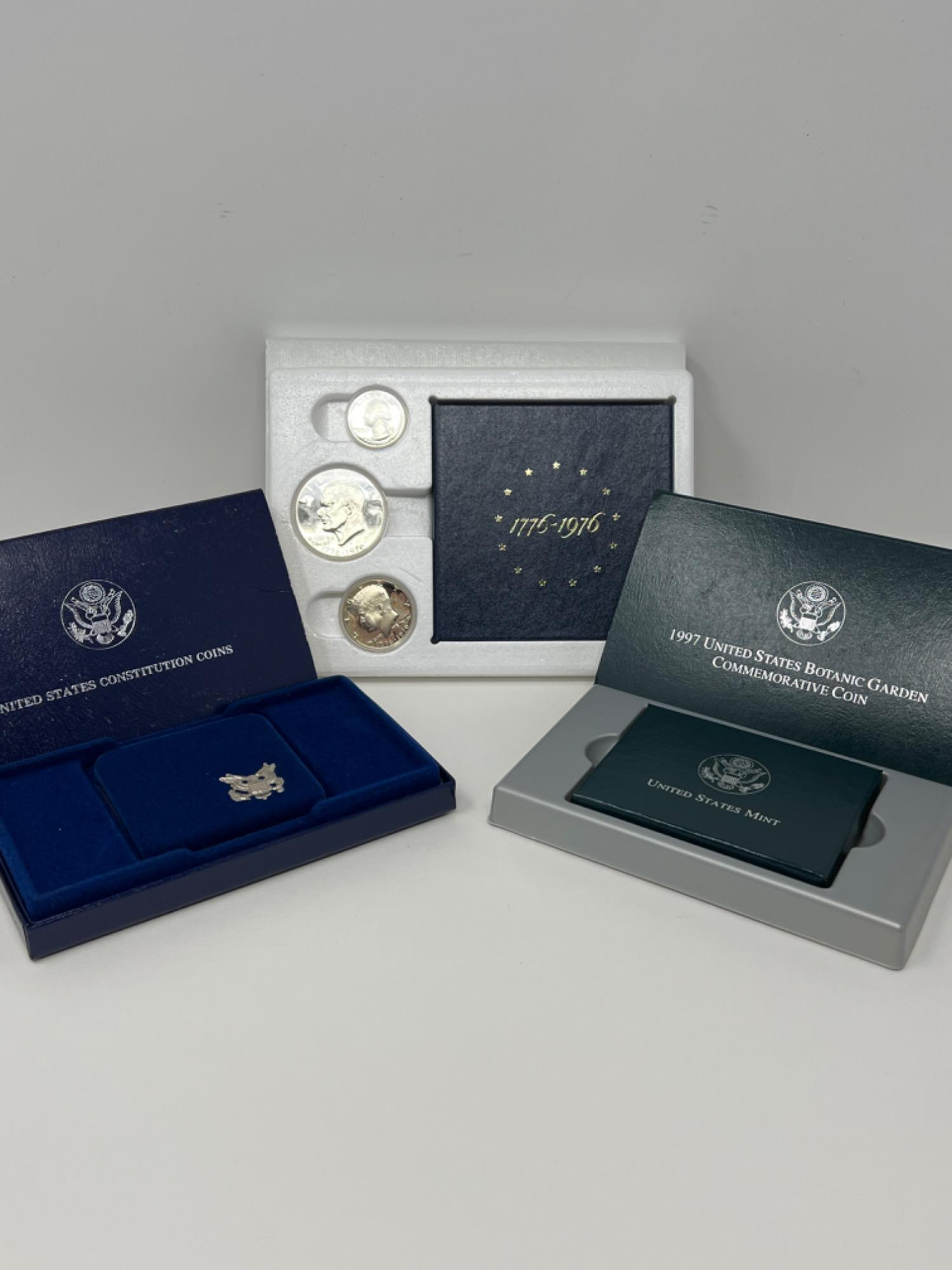 1776-1976 Centennial Silver Proof Coin Set - Dollar, Half Dollar Quarter - Mint S. 1997 United States Botanic Garden Commemorative Coin, Uncirculated Silver Dollar, Mint P. 1987 U.S. Constitution 200th Anniversary Coin 1787-1987. We The People One Dollar. Mint P.