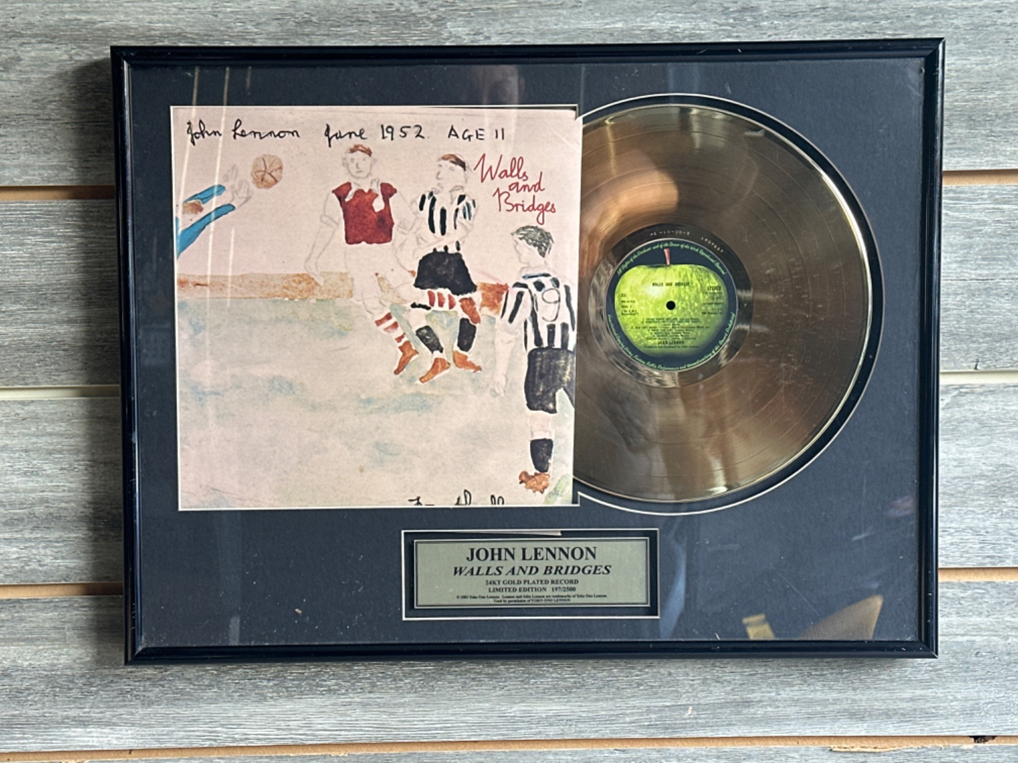 John Lennon Vinyl Walls & Bridges Framed Wall Memorabilia Walls and Bridges is the fifth studio album by John Lennon, written, recorded and released during his 18-month separation from Yoko Ono (June 1973-January 1975), the album captures Lennon in the midst of his 'Lost Weekend'. This album was an American Billboard number one album and featured two hit singles 'Whatever Gets You thru the Night' and '#9 Dream', the first of which was Lennon's first number one hit in the United States as a solo artist.