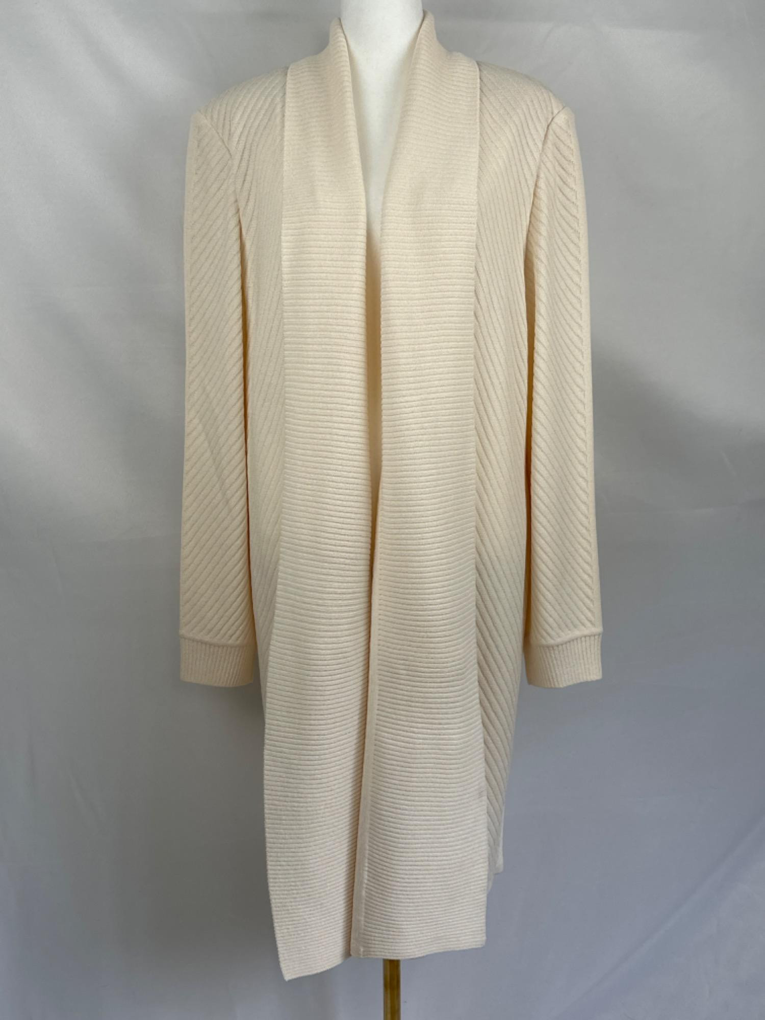 ST JOHN Ivory Long Ribbed Sweater- XL *please note there is a smudge on the bottom front of sweater, needs to be cleaned, otherwise in pristine condition