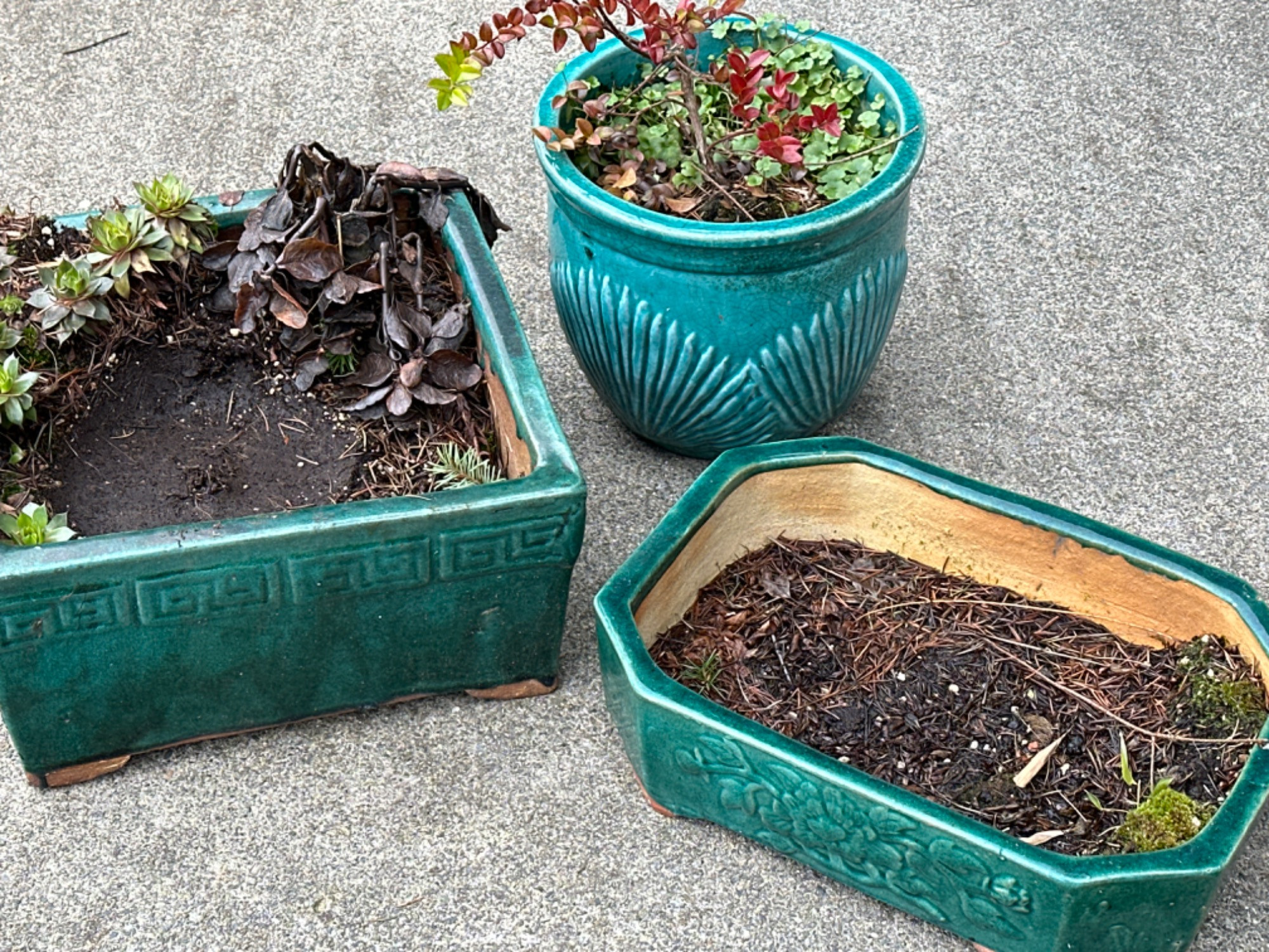 Deep Green Planter/Pots with Oriental Flair *please note photos carefully for more details on condition