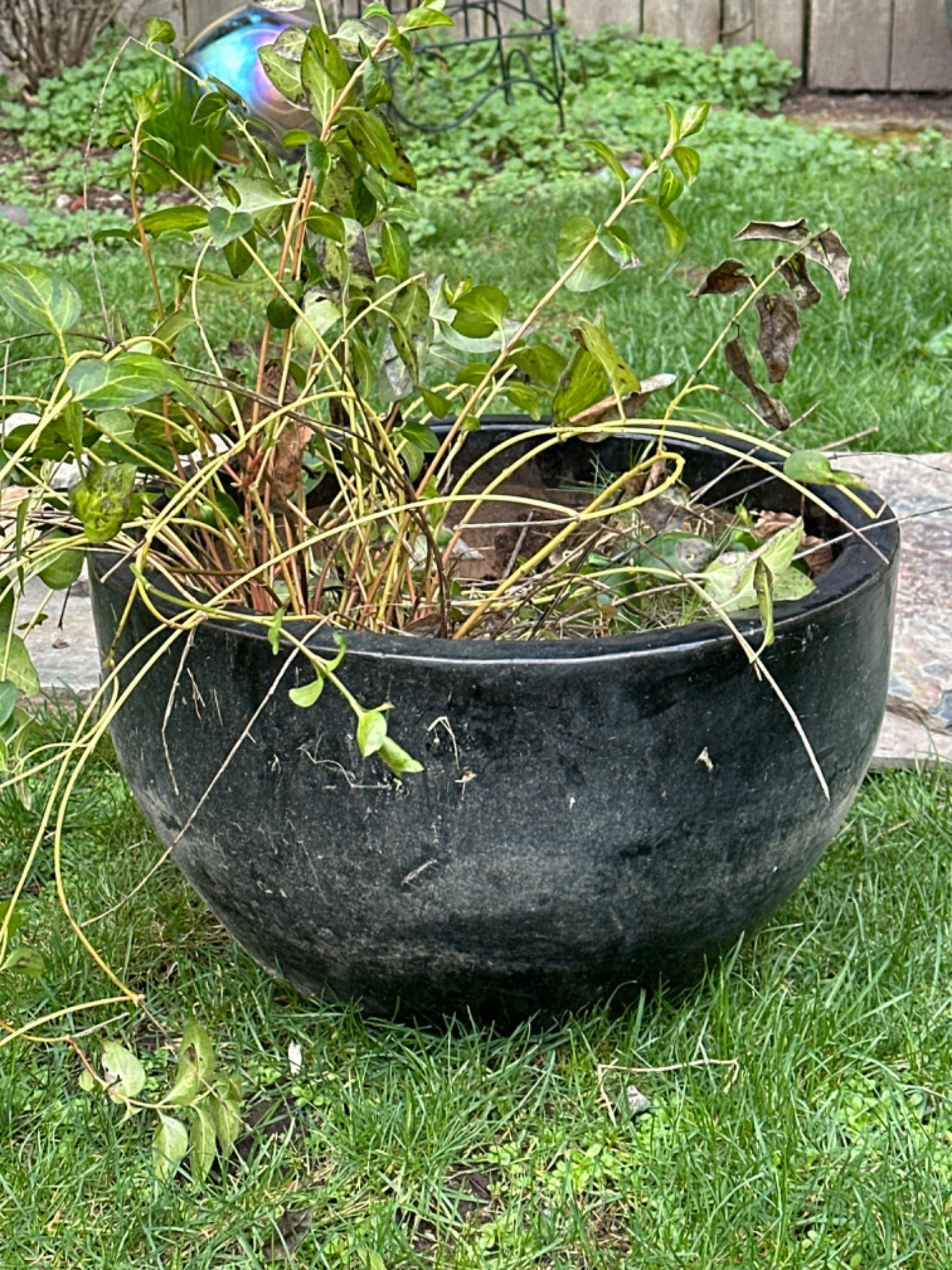 Lot # 138 - Larger Black Glazed Bowl Planter/Pot