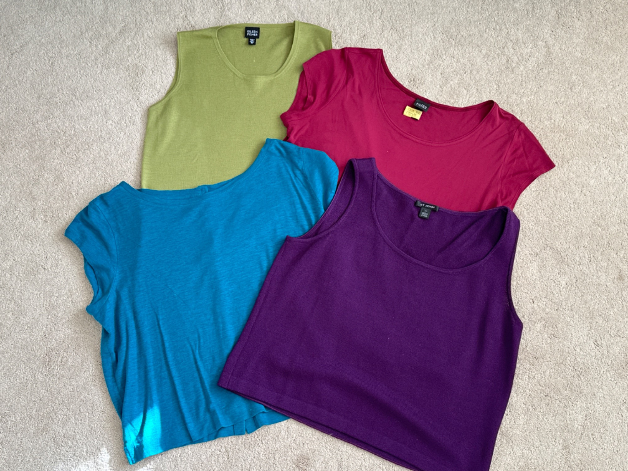 Tanks & Tees- Eileen Fisher & ST JOHN - XL Gently used condition. Teal seems to have a small spot (?) on one of the sleeves.