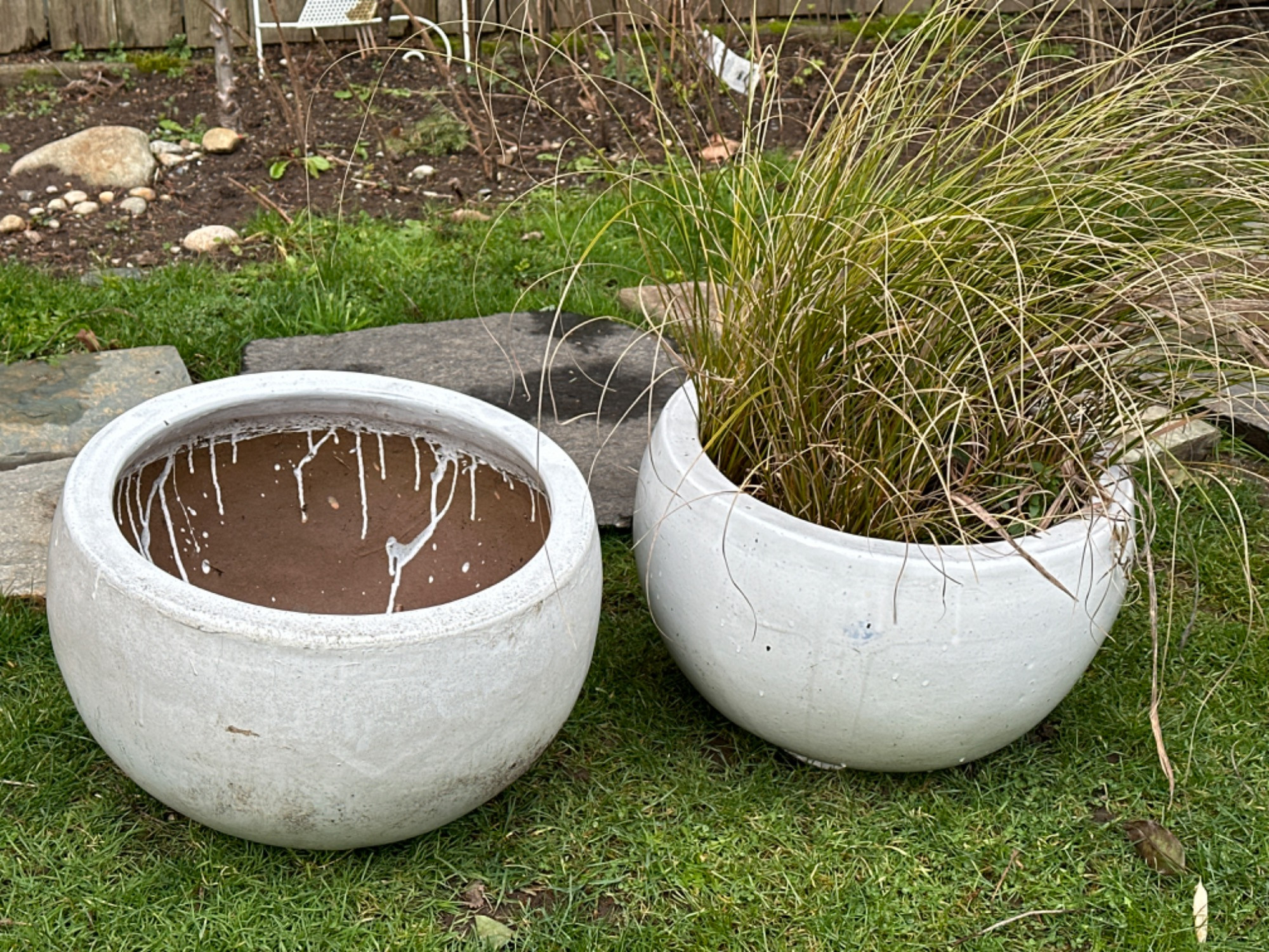 Lot # 149 - White Bowl Ceramic Glazed Planter Pair #2