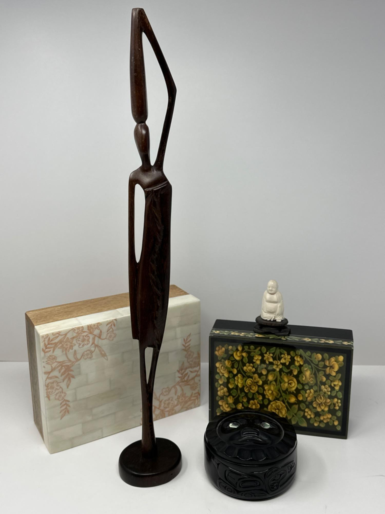 Lot # 155 - Carved Ivory Buddha, Vintage Inuit Lidded Box, Trinket Boxes & more