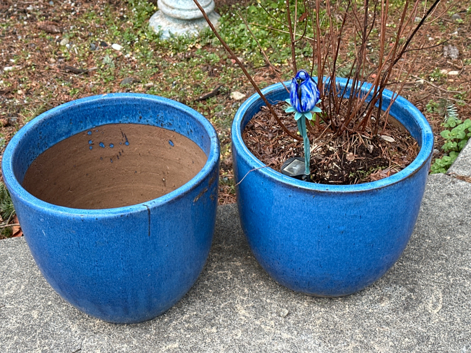 Blue Glazed Ceramic Planter/Pots 13.25” h x 12” *please note photos carefully more details on condition