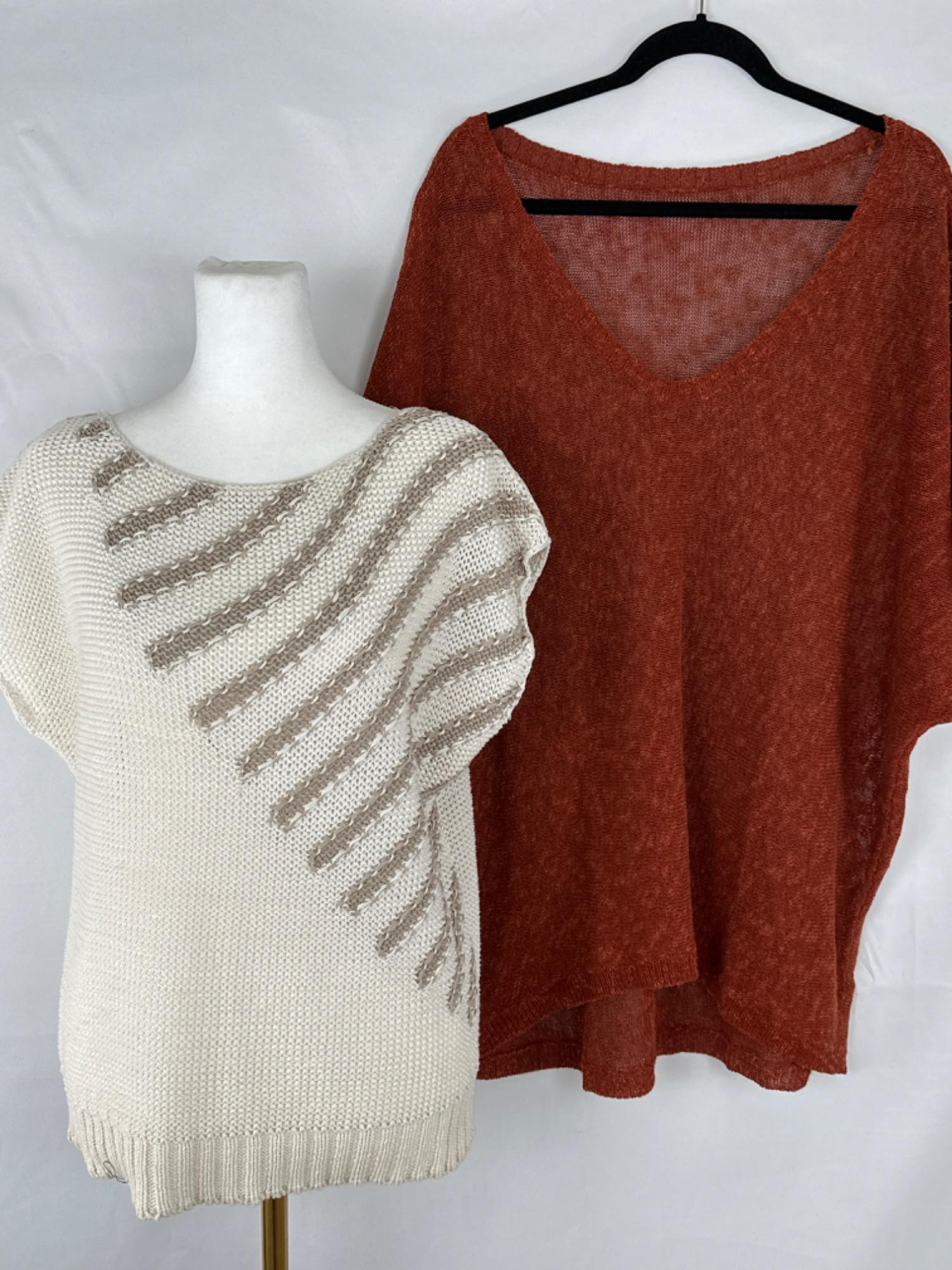 Lot # 174 - Sweater Pair - Ivory Vest & Rust Oversized Pullover