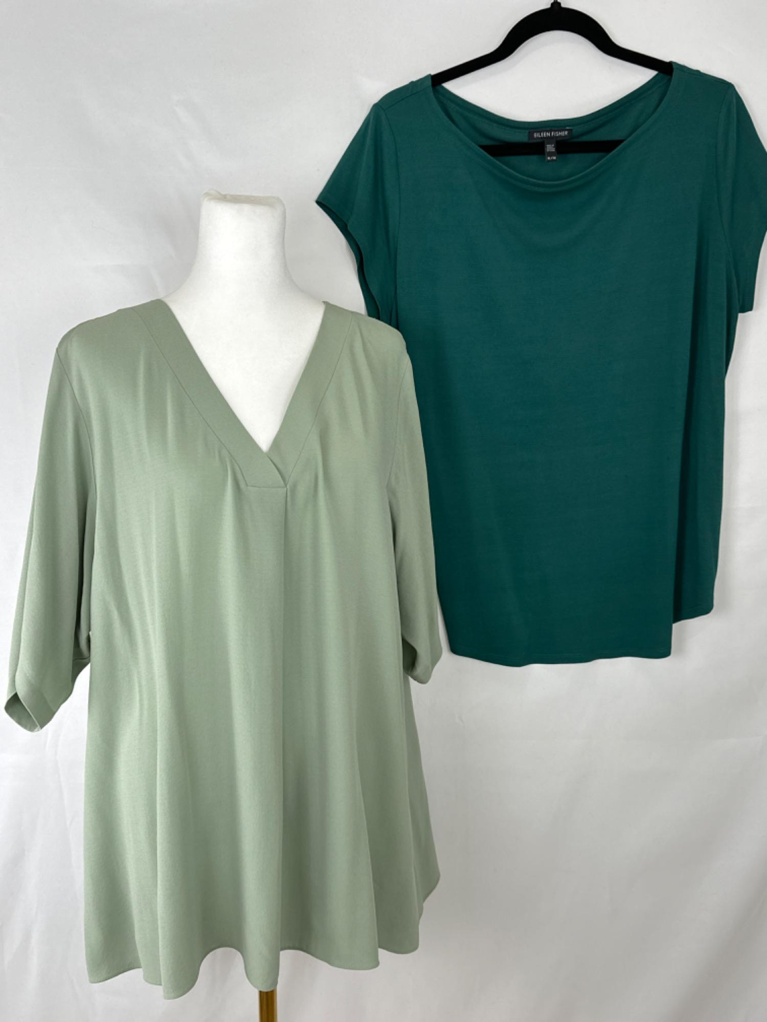 Lot # 182 - Eileen Fisher Green Blouse Duo - XL
