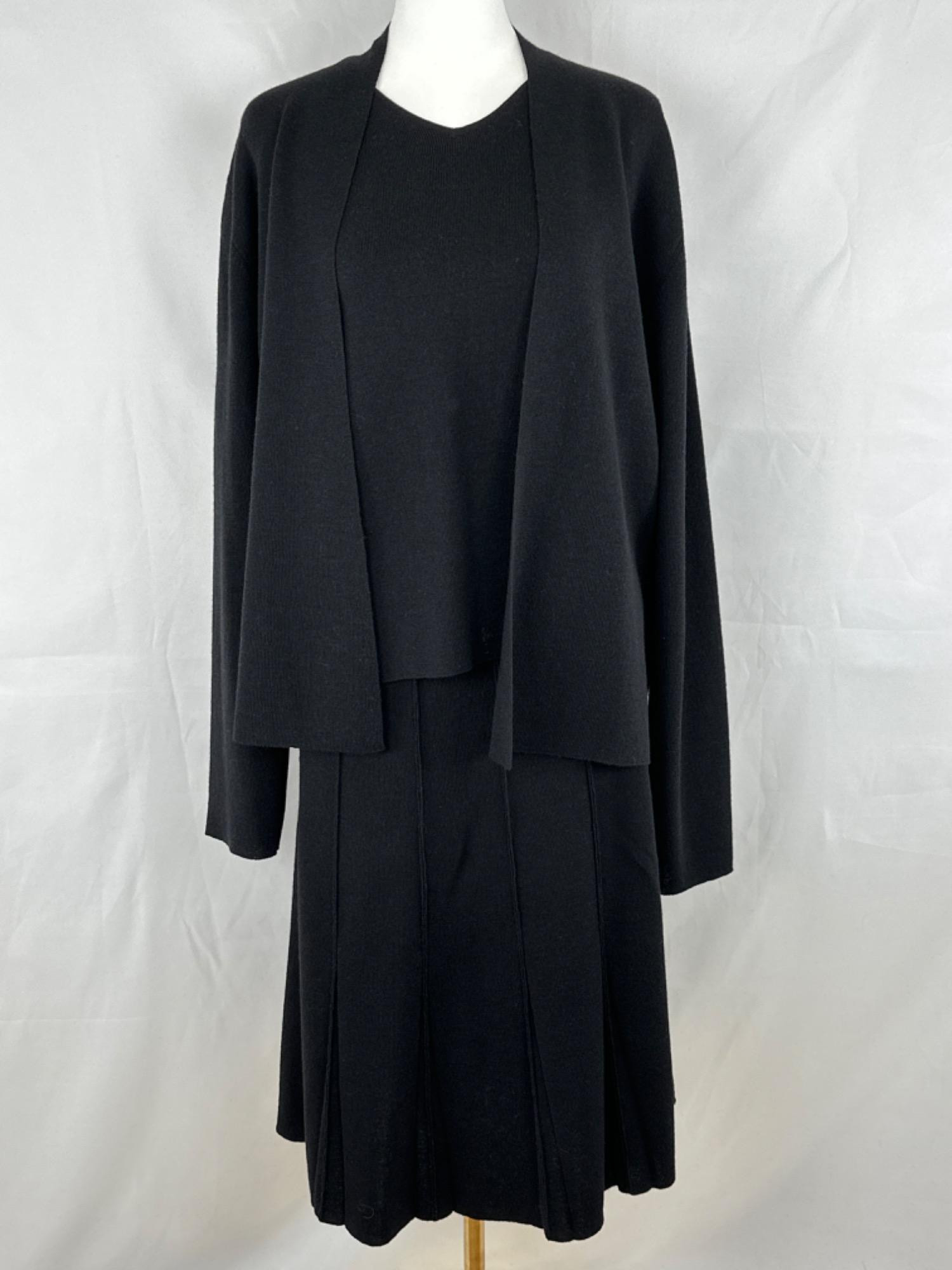Lot # 184 - Eileen Fisher 3pc Black Knit Sweater Skirt Set - XL