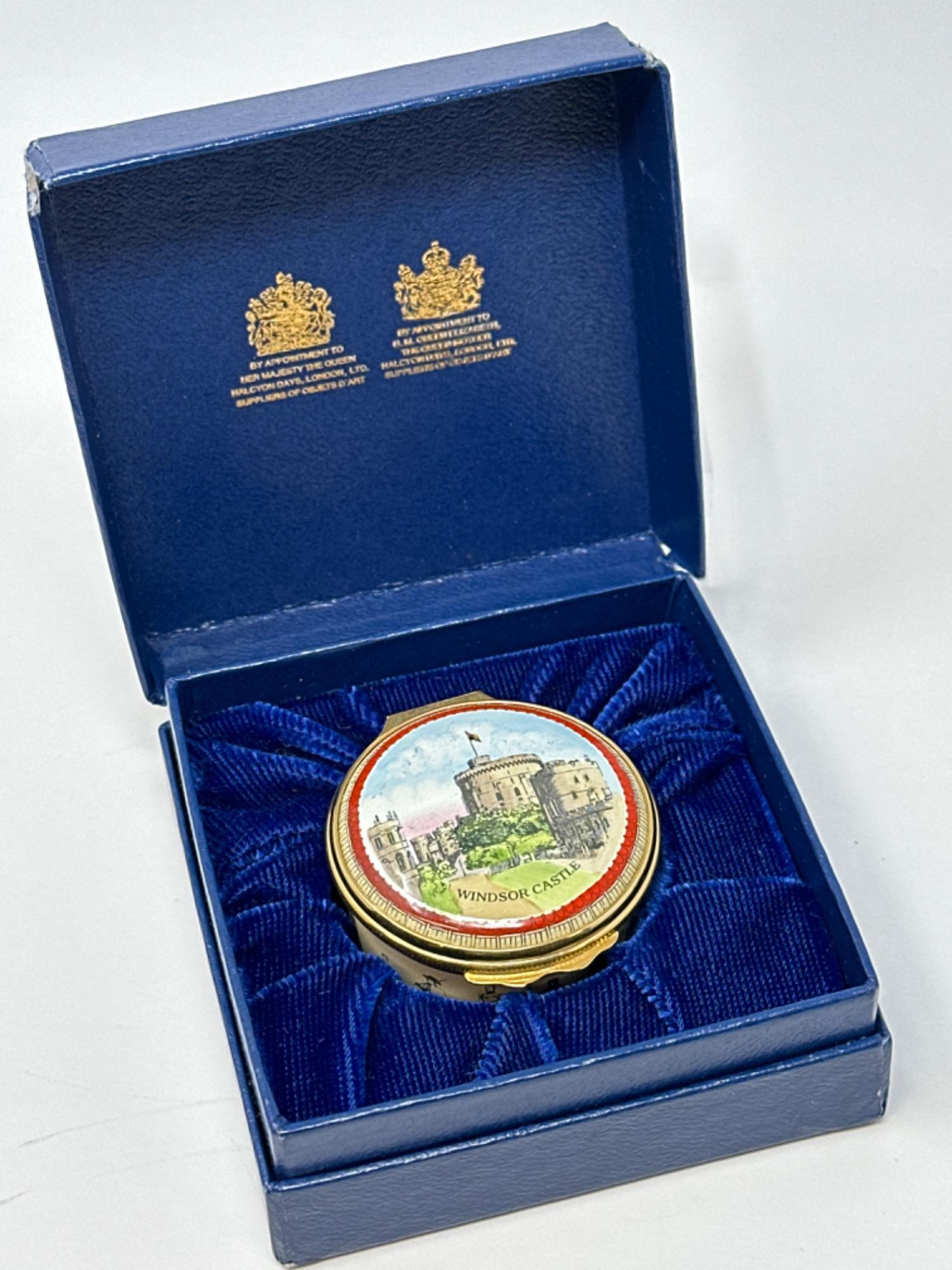 Halcyon Days Enamel Windsor Castle Trinket Box Size 2¼" wide x 1¼" high
