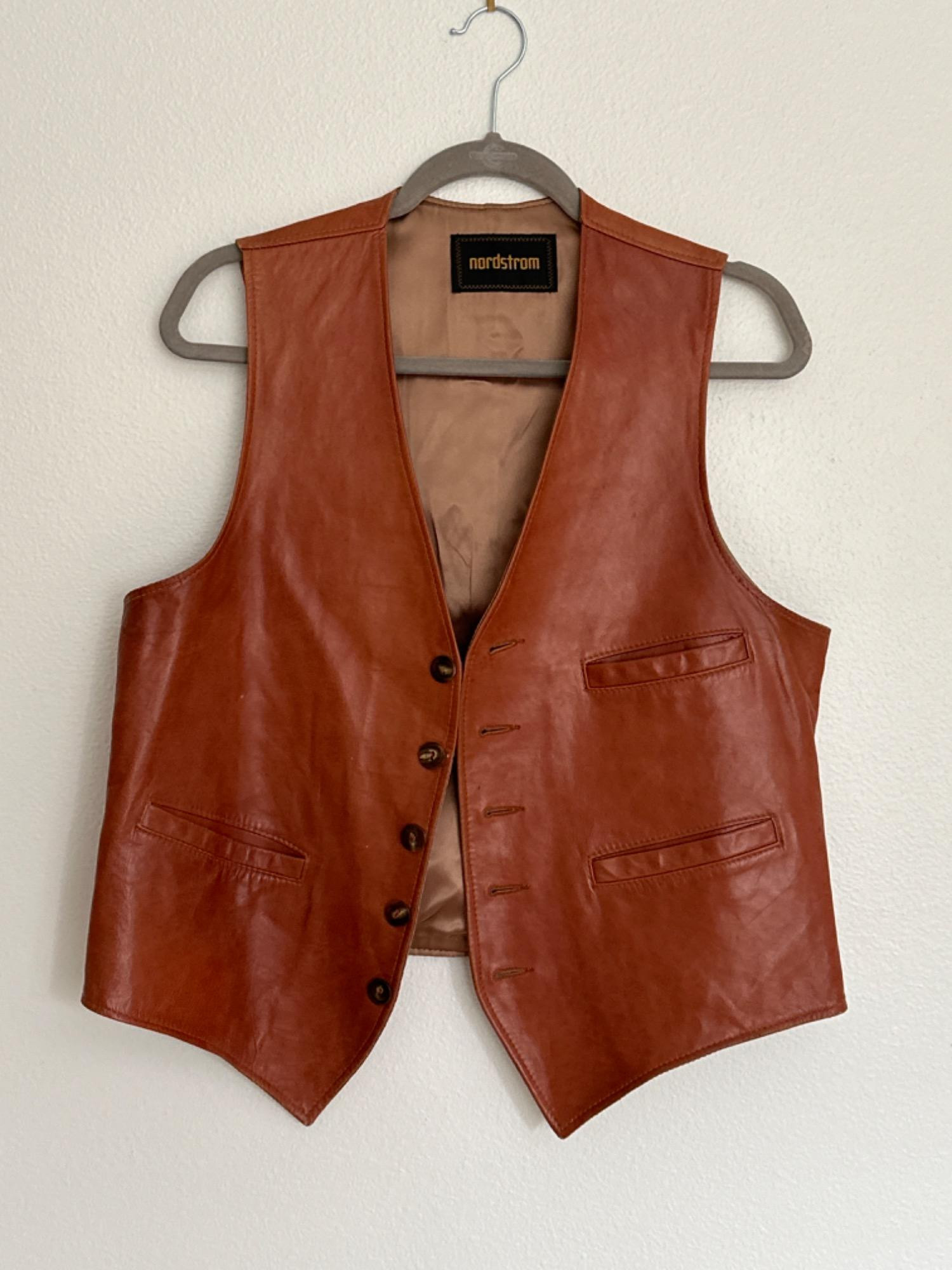 Men's Vintage Leather Nordstrom Vest *no size tag, please see measurements 20.5” w across chest, laying flat x 22” nape of neck to hem in back