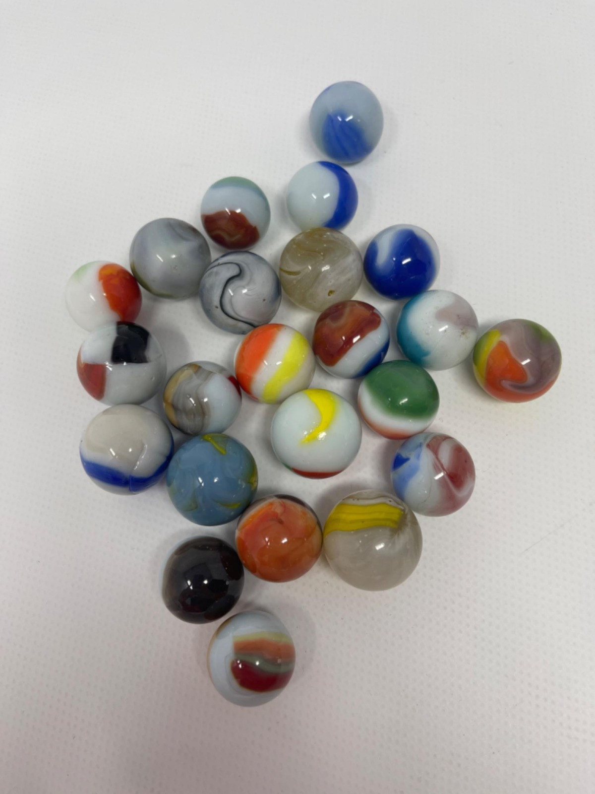Ranges in size from 1" - 1.2" 5 marbles have imperfections. Shown in photos.