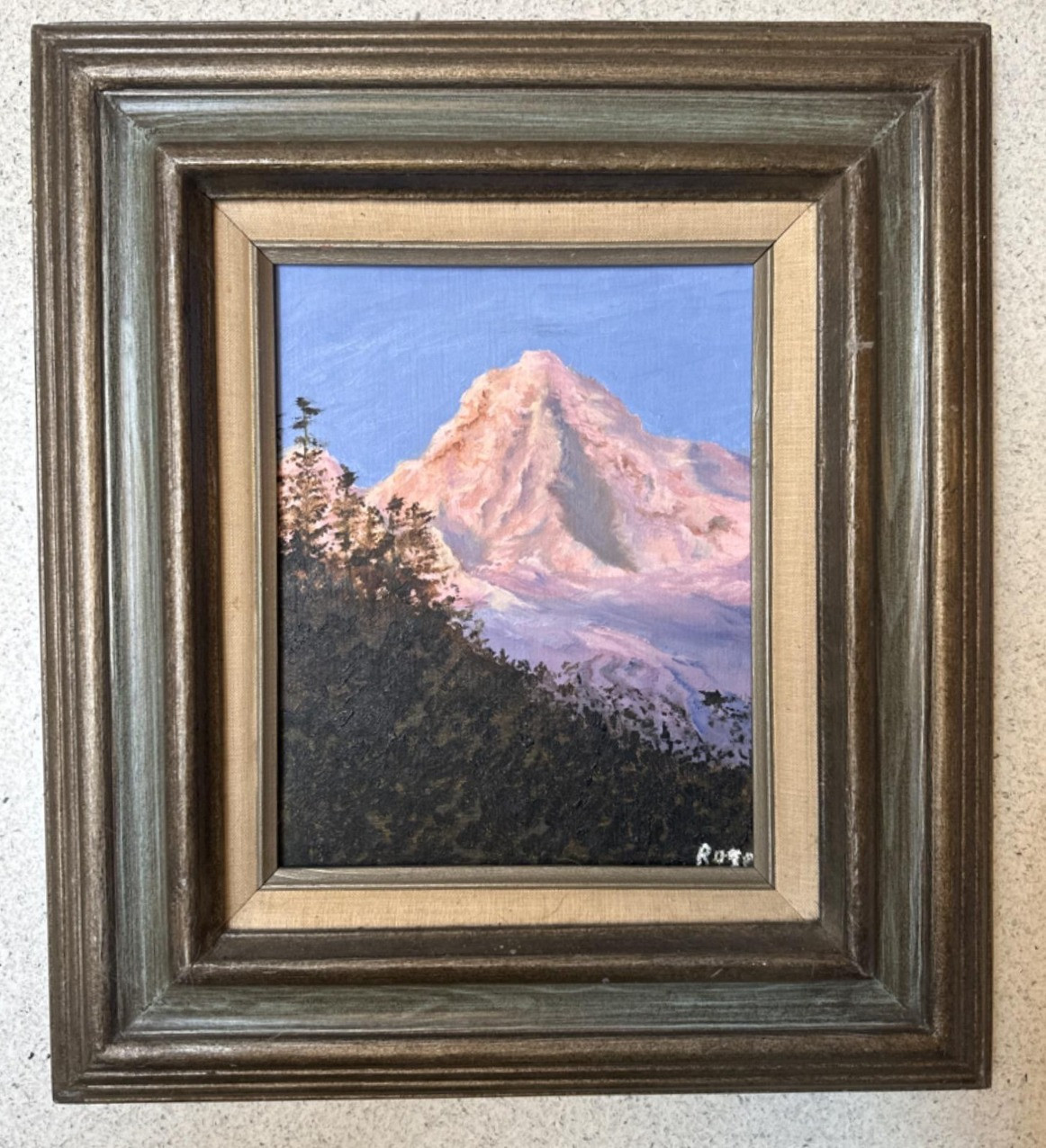 This art is 17 inches tall by 15 inches wide the oil painting is 8 x 10 hard to distinguish the artist.