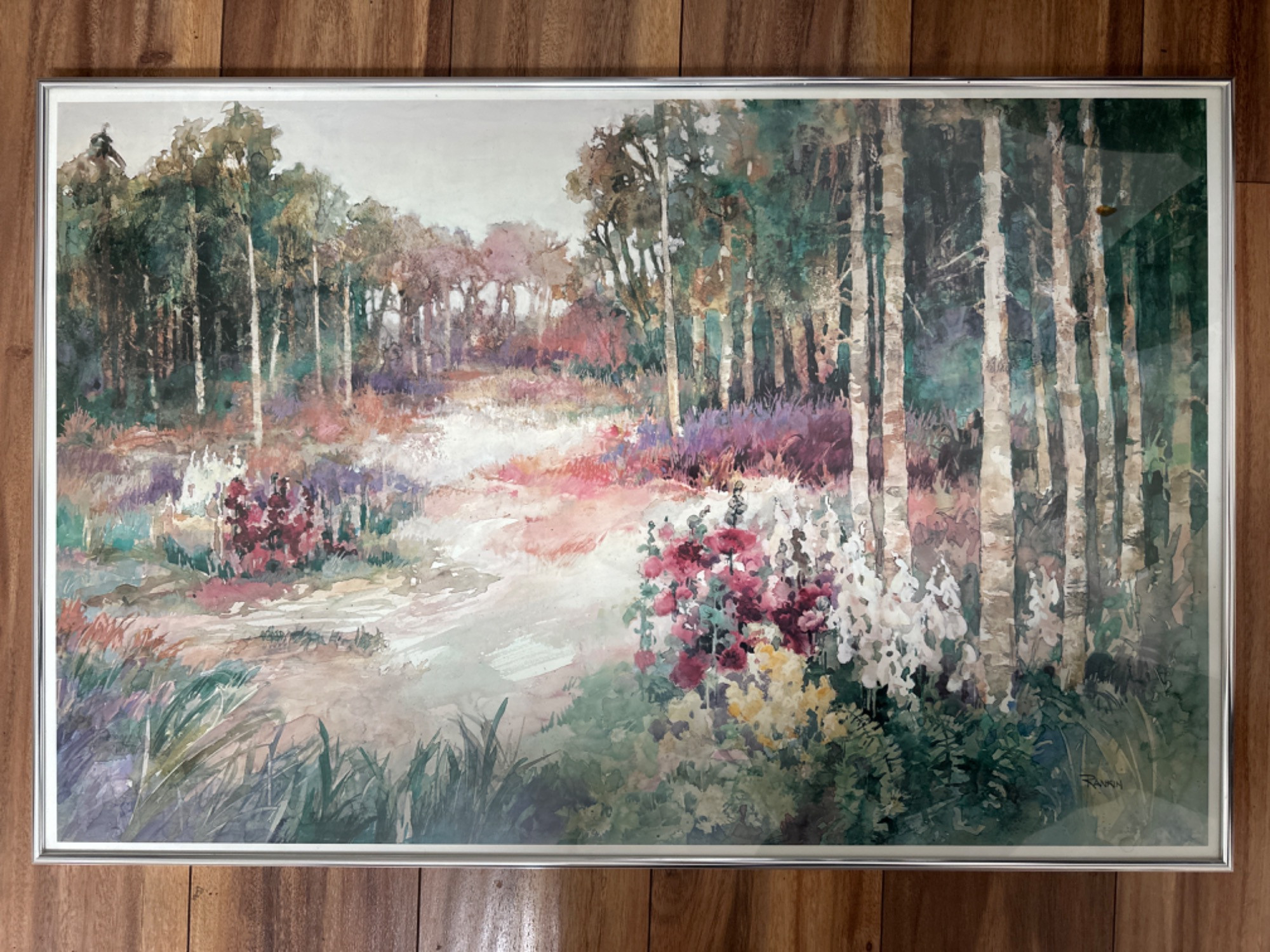 Floral Watercolor Litho? Print by David Rankin The measurements are 33 inches wide 21 3/4 inches tall. Framed *possible spot lower right hand area by signature.