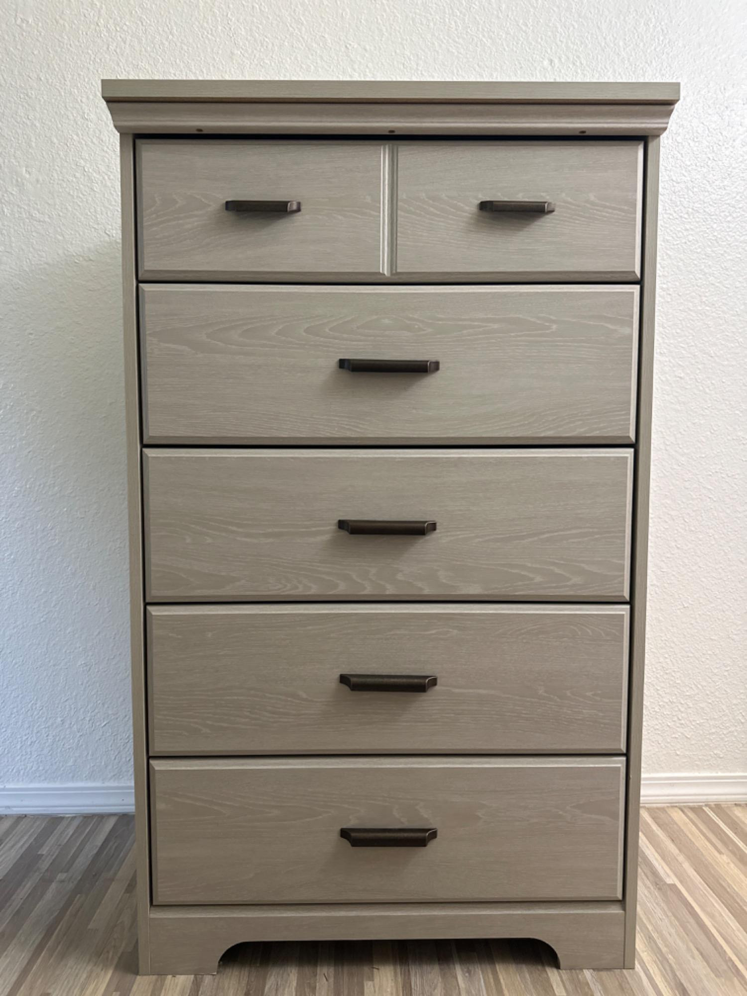 Dimensions of this dresser are approximately 30 inches wide 49 1/2 inches tall and 19 1/2 inches deep Gently used condition