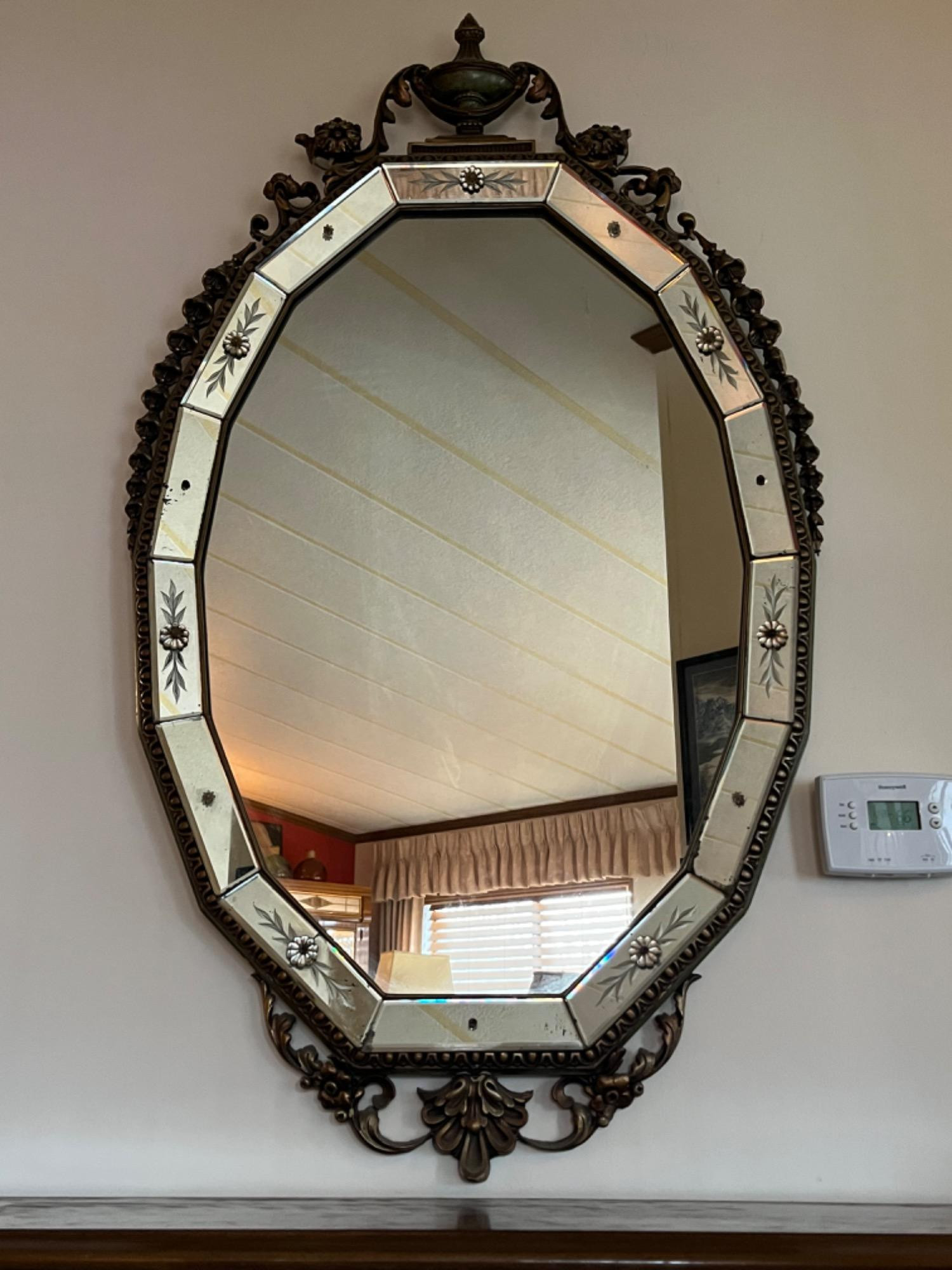 Measures 43” x 25”. Some of the decorative trim needs repair.