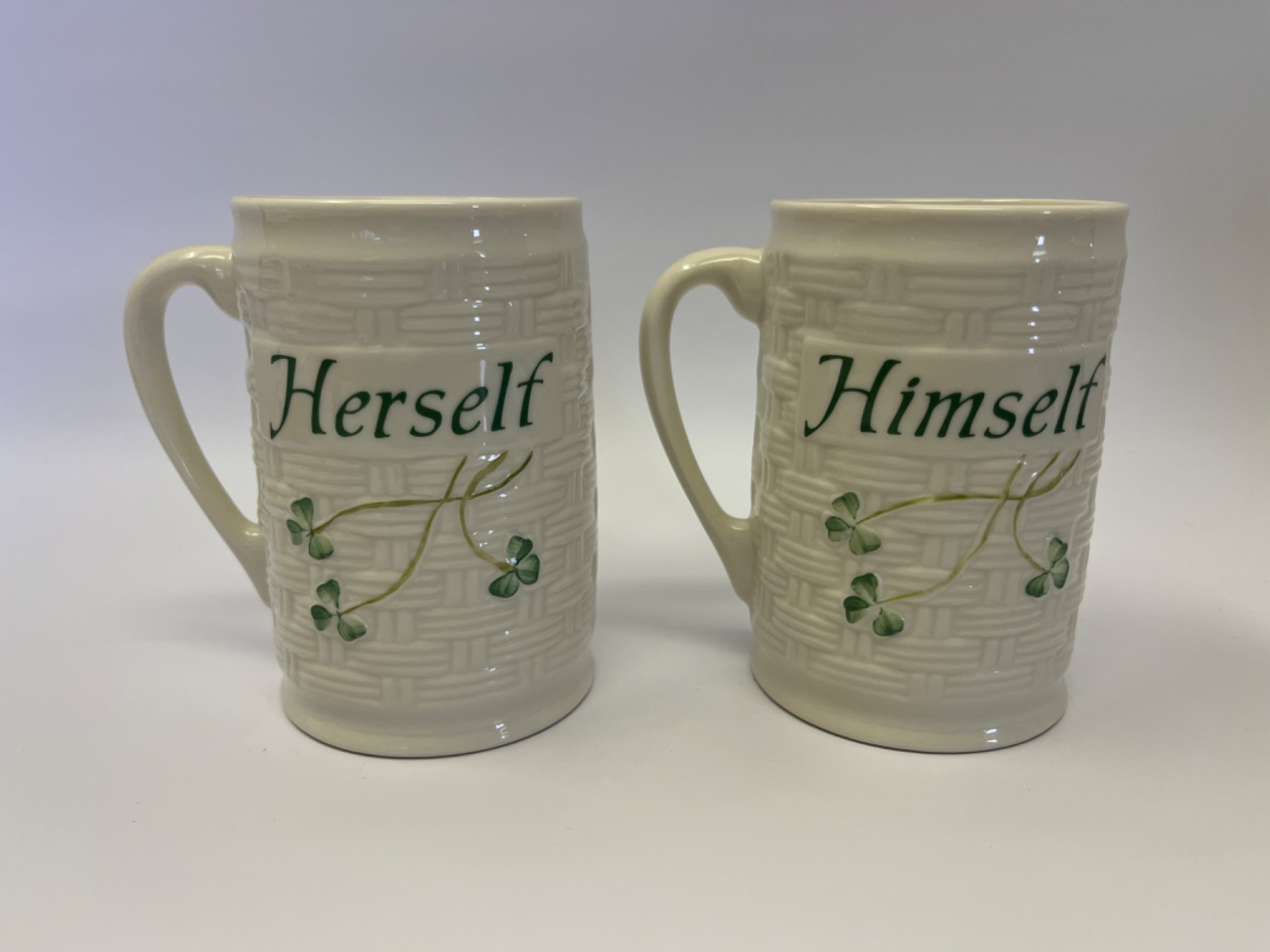 Lot # 25 - Belleek His and Her Porcelain Mugs