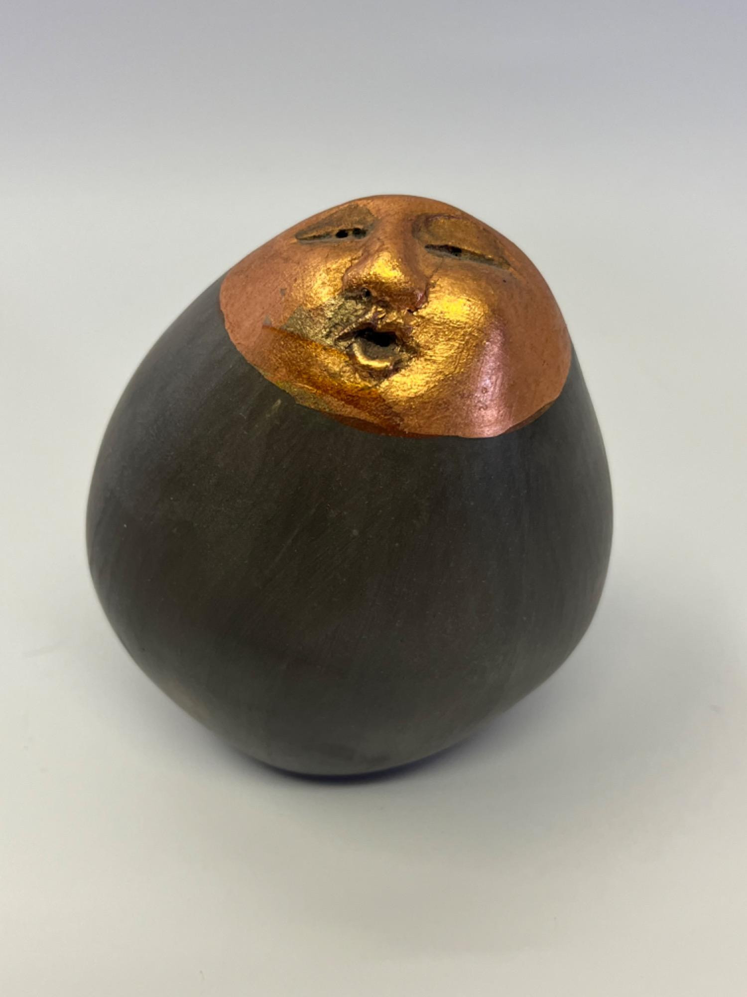 Nan Emmett Raku Ceremony Spirit Rattle. Measures 4” tall