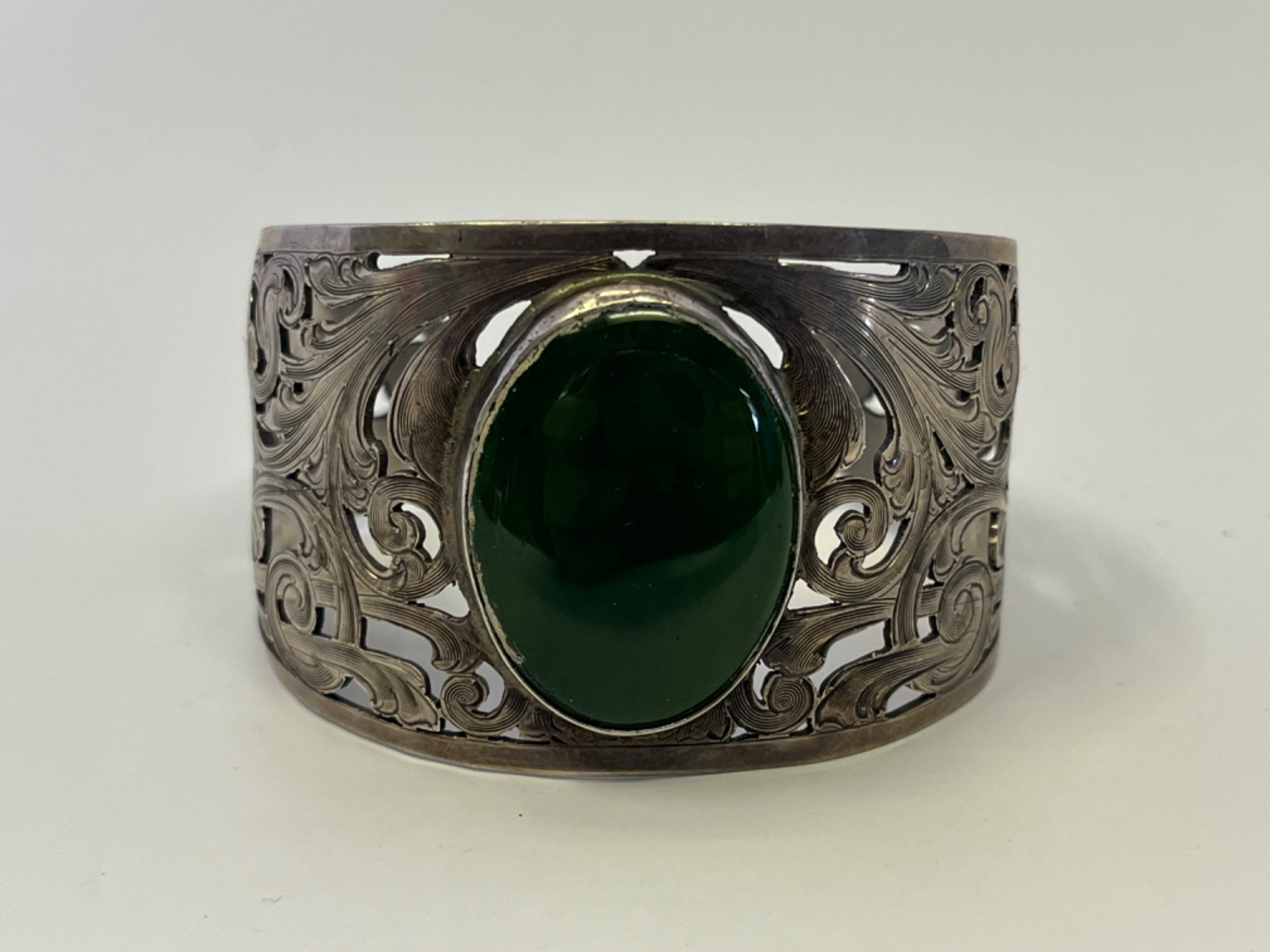 Lot # 35 - Sterling and Jade R.P.F. Cuff Bracelet