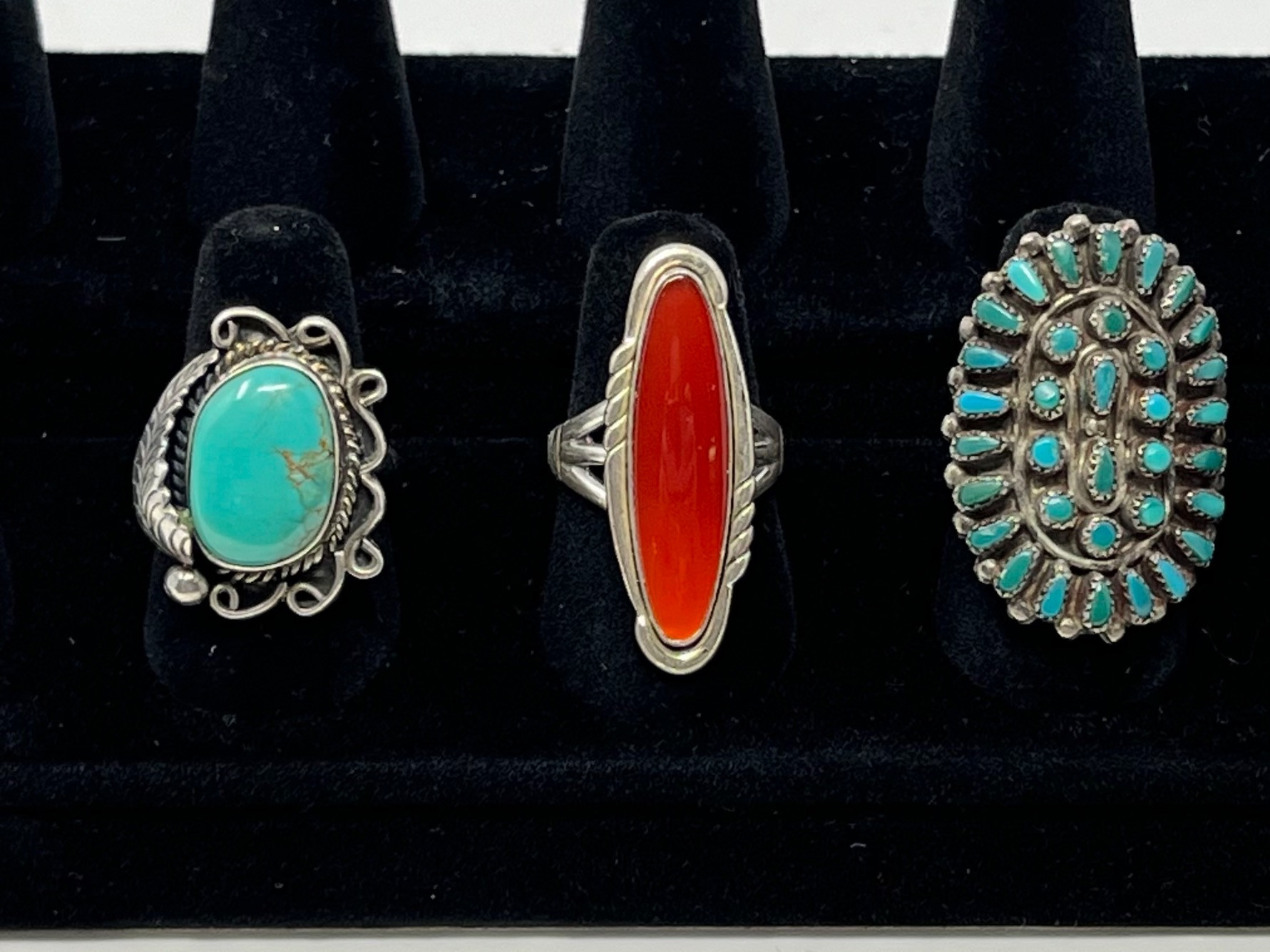 Lot # 76 - Turquoise and Carnelian Sterling Rings