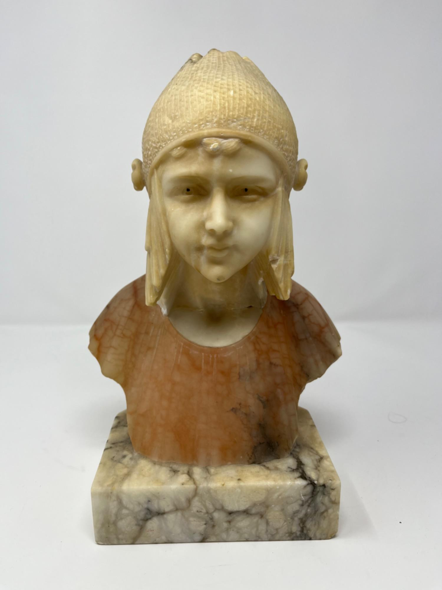 Lot # 117 - Alabaster Carved Bust of A Girl in Knit Hat