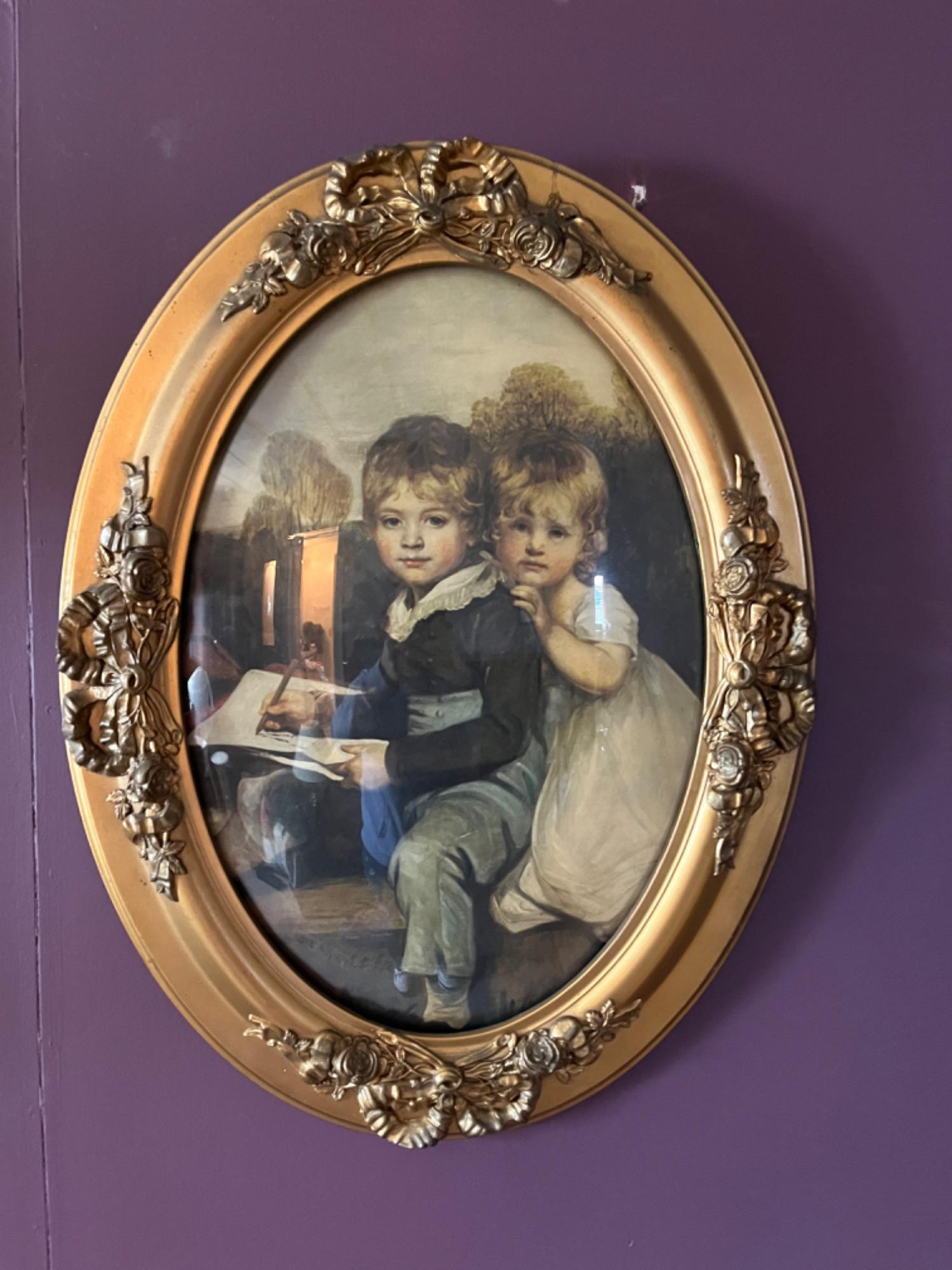 Lot # 139 - Vintage Oval Framed Boy And Girl Print