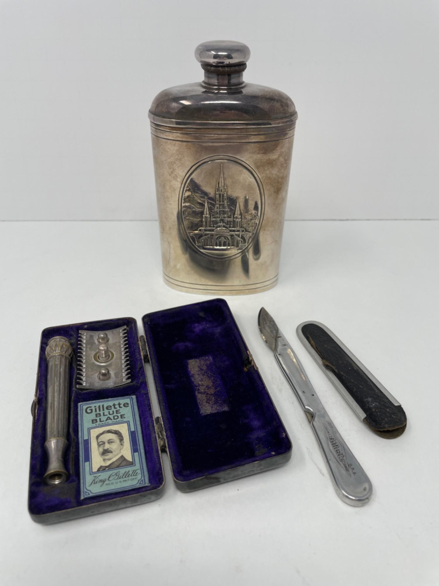 1916 Gillette Pocket Edition Shell Bottom Straight edge Razor Flask