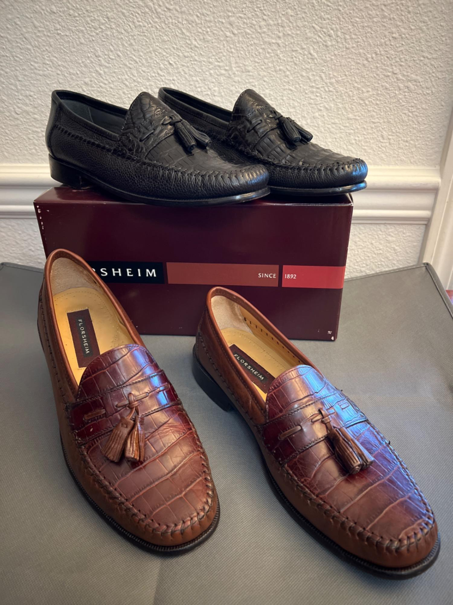 Lot # 71 - Florsheim Imperial Alligator Leather Loafers & Cognac Leather Loafers - Size 9D