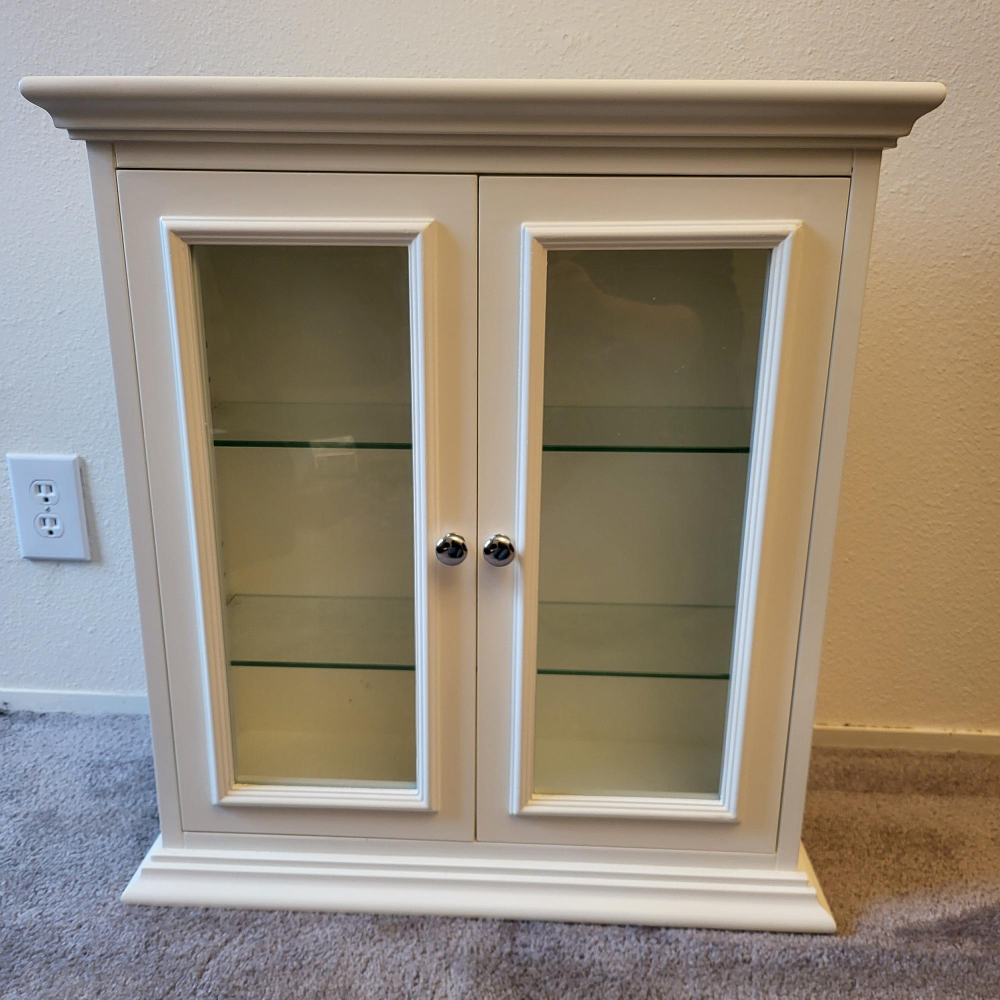 Lot # 97 - White Bathroom Wall Cabinet Glass Shelves