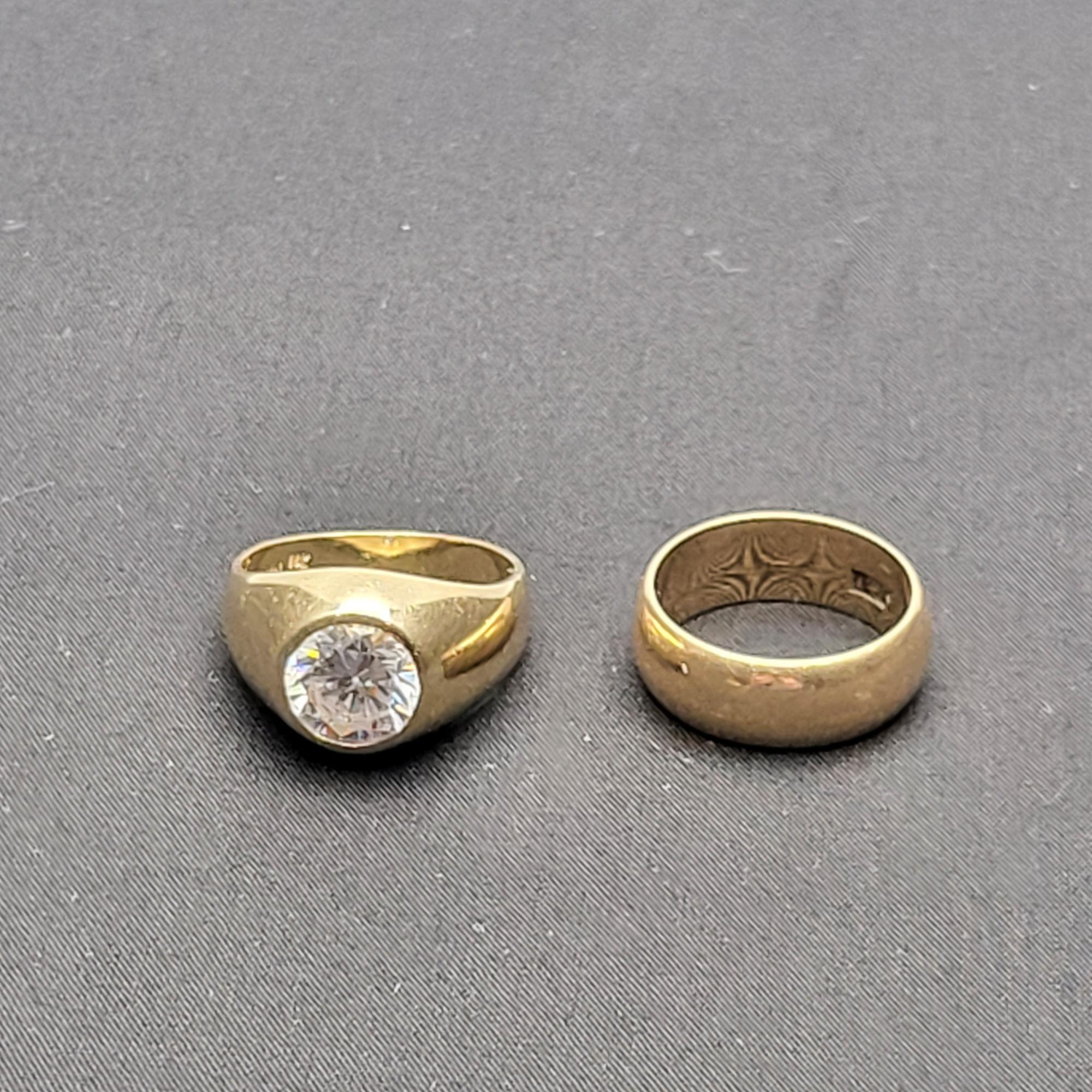 Lot # 118 - 14K Gold Band & 14K Gold Ring Clear Stone - 16.9gr