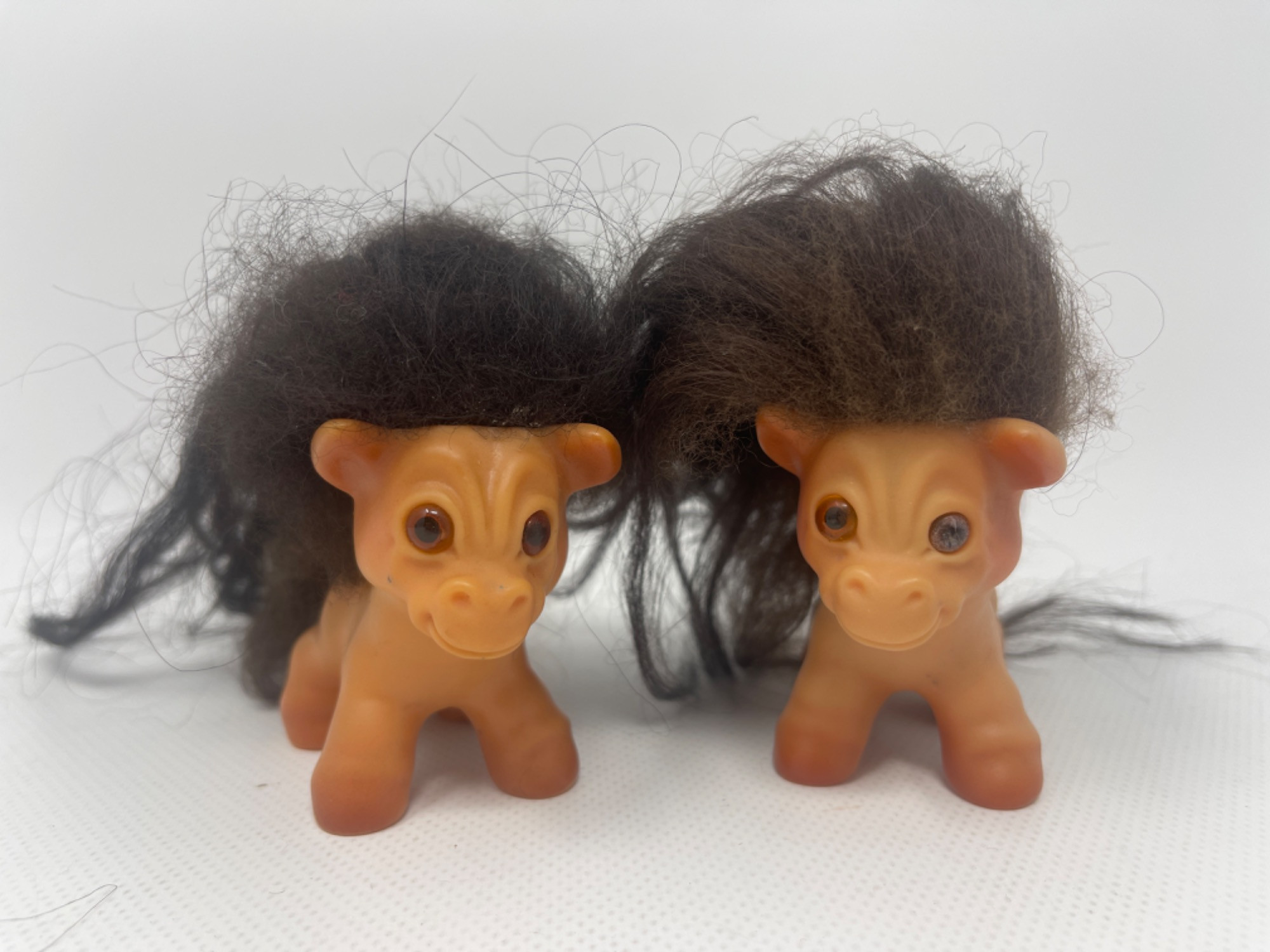 (2) Rare DAM Things Vintage Troll Horses First has a couple of black marks on its face Second has a cloudy eye. Both have some matted hair