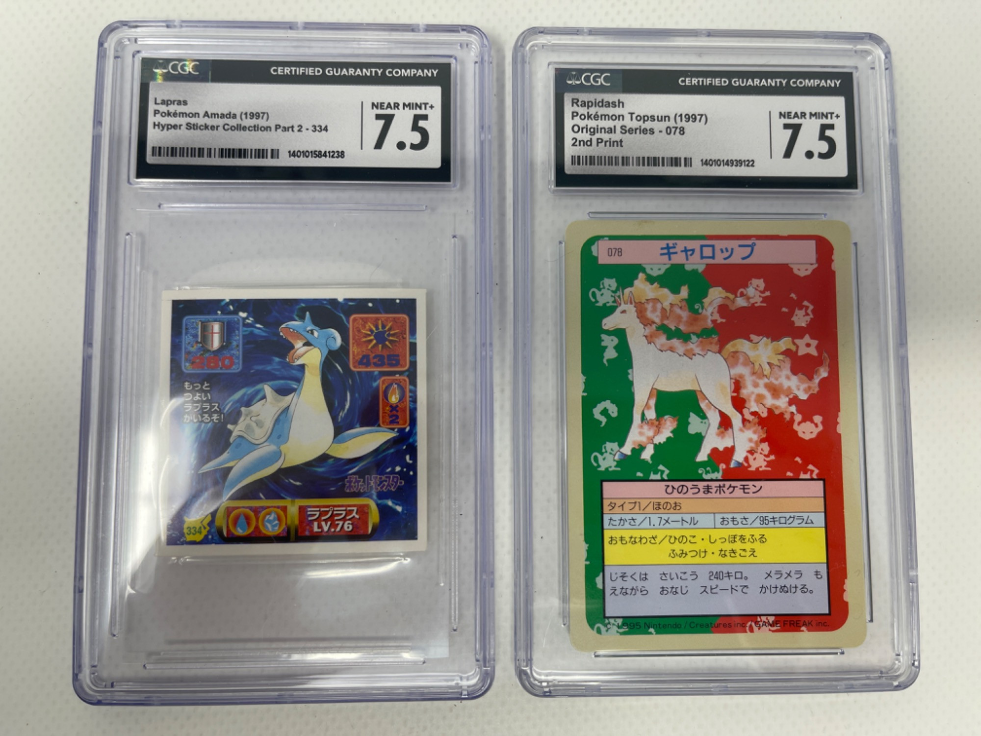 Lot # 22 - (2) 1997 CGC Graded 7.5 Pokemon Card & Sticker - Lapras & Rapidash